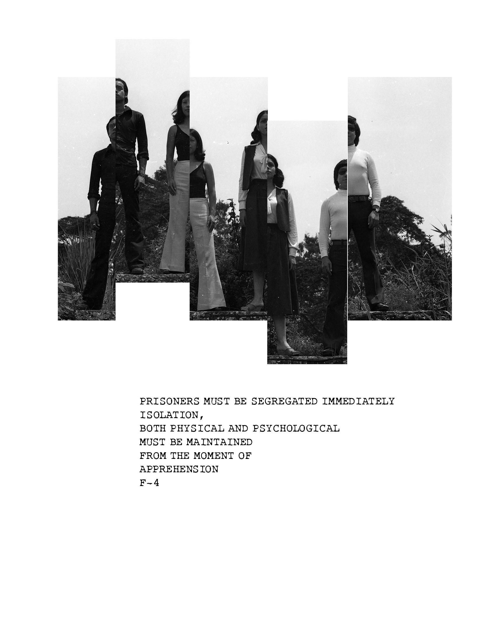 While I read, I couldn’t help but think how many of los compañerxs de mi papá endured torture. If any of the people in my father’s pictures endured the procedures outlined in those pages. It seemed to me that las fotografias and the manual were having their own conversation that needed to be captured and experienced to understand es terror de ese tiempo. In the following images you will get to see that conversation and hopefully experience some of the abjection of placing loved ones within the context of terror.