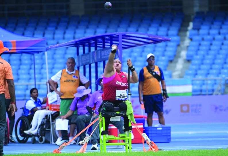 París 2024 Gloria Zarza Guadarrama revalidó su liderazgo internacional,tras conseguir la presea dorada en la final de impulso de bala F54, con un registro de 7.97 metros,su mejor marca de latemporada,en el CampeonatoMundialdeParaAtletismoNueva Delhi2025.