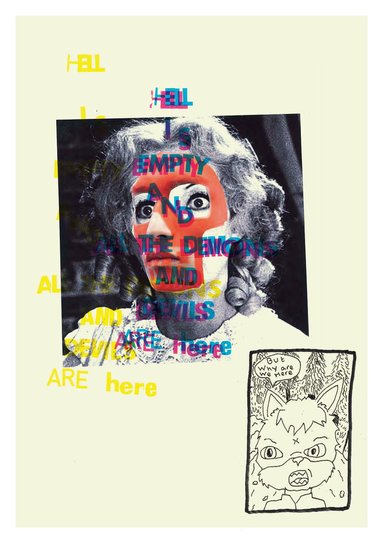 My work serves as a light-hearted and satiric exploration of beauty standards and the pressure we can become subjected to via every aspect of life and in particular the media landscape, which has boomed in the last few decades to the point where these influences are imprinted into young people’s minds as they are growing up and can seriously damage them. In this example we see paparazzi, a music poster and a rom-com. The style of my work is one that started when I was 7 years old and would find myself mindlessly exploring, or rather destroying, the faces of every celebrity I could steal off Google Images using Adobe Photoshop, this hobby continued through to adulthood and started to have a deeper meaning. These influences plus my natural leaning into horror themes is what creates the work I output today.