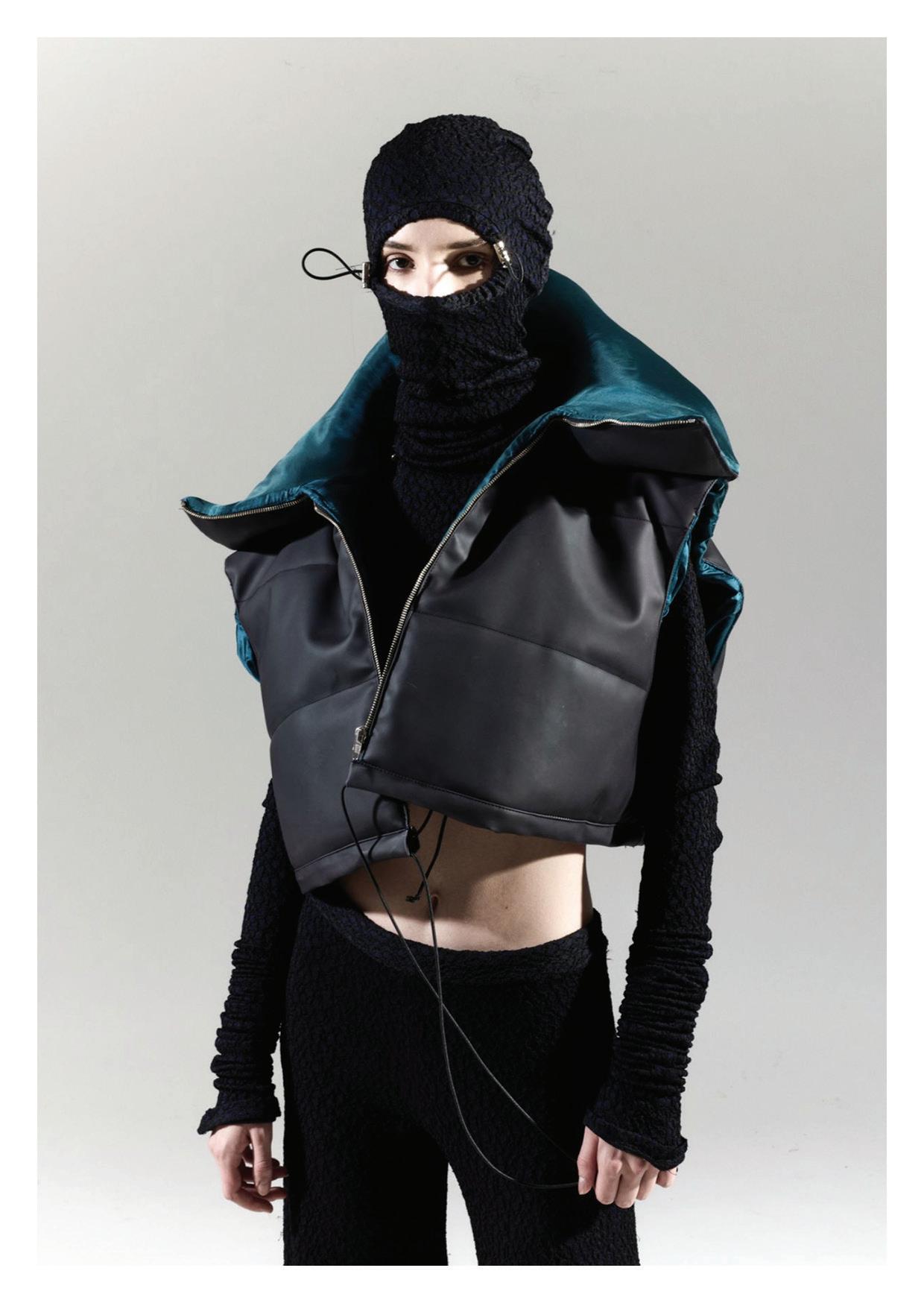 My collection Abyss is more than just aesthetics. The pieces delve into the intricacies of human expression and emotion and through modularity and adaptability, I aim to make my pieces timeless, creating garments for all walks of life and no specific season. Abyss builds on powerful means of self-expression to allow the wearer to present darker feelings and emotions that are sometimes left unspoken.