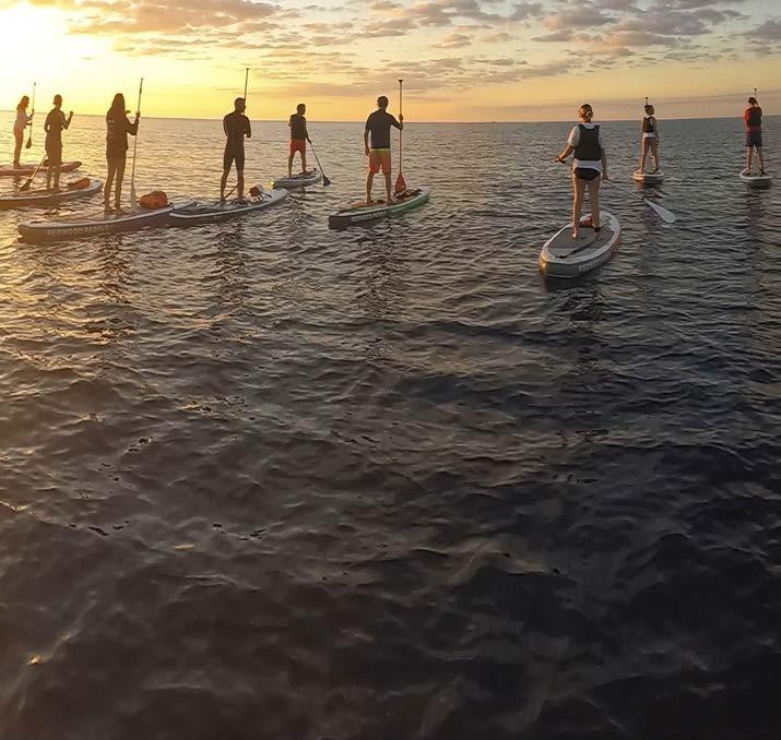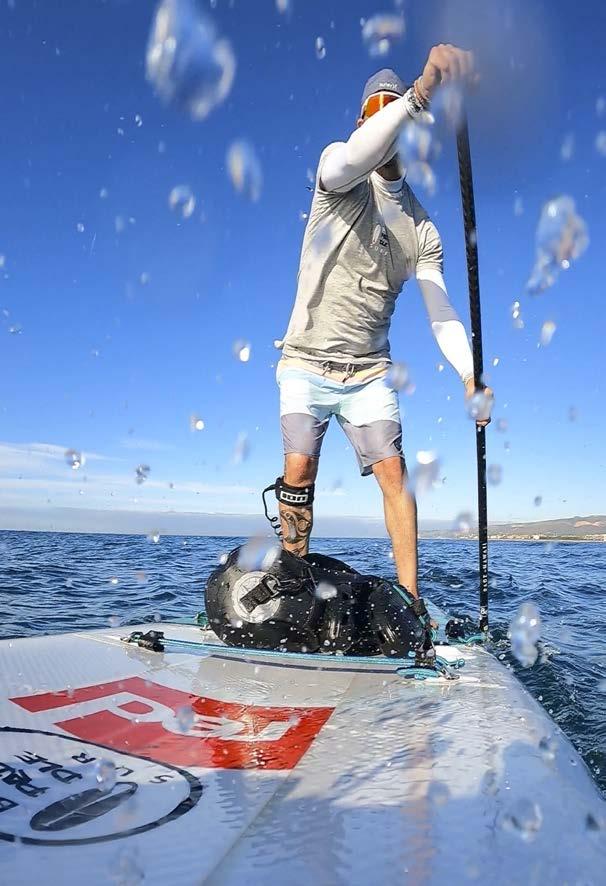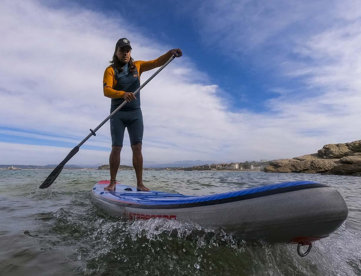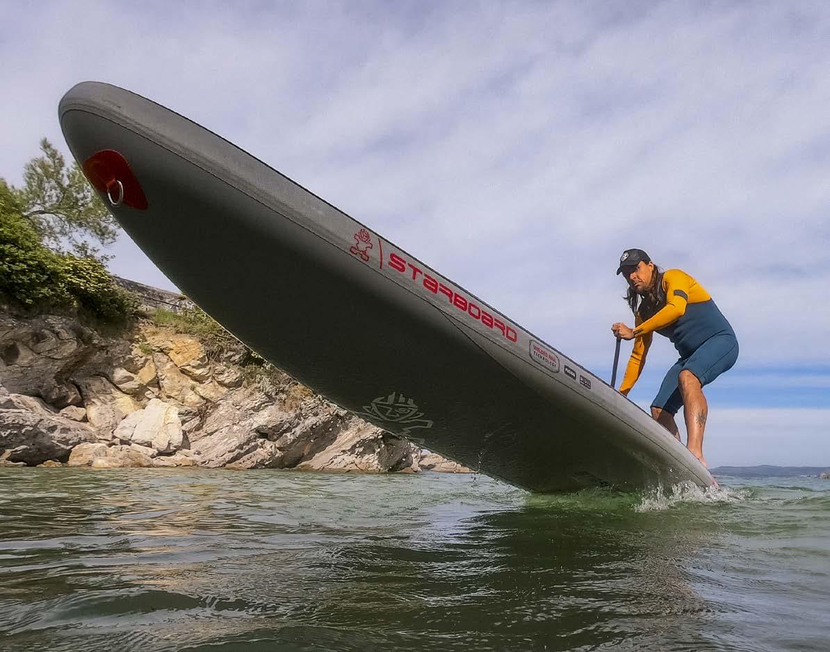 Regarding the materials or equipment, they always ask me the same question: what board do you recommend? There are several points to take into account when choosing a board suitable for our level and objective. We, for the activity we do, always recommend touring boards, ideal for routes, wide boards, very stable, with buoyancy capacity and long. They are very versatile boards, such as 11.0”x32”, 11.6”x32” or reaching 12.6”x32. These boards give us the possibility of being able to load them with waterproof bags, coolers and, above all, ease of covering long distances with little effort. For our coast, these boards give a lot of play when choosing a route.