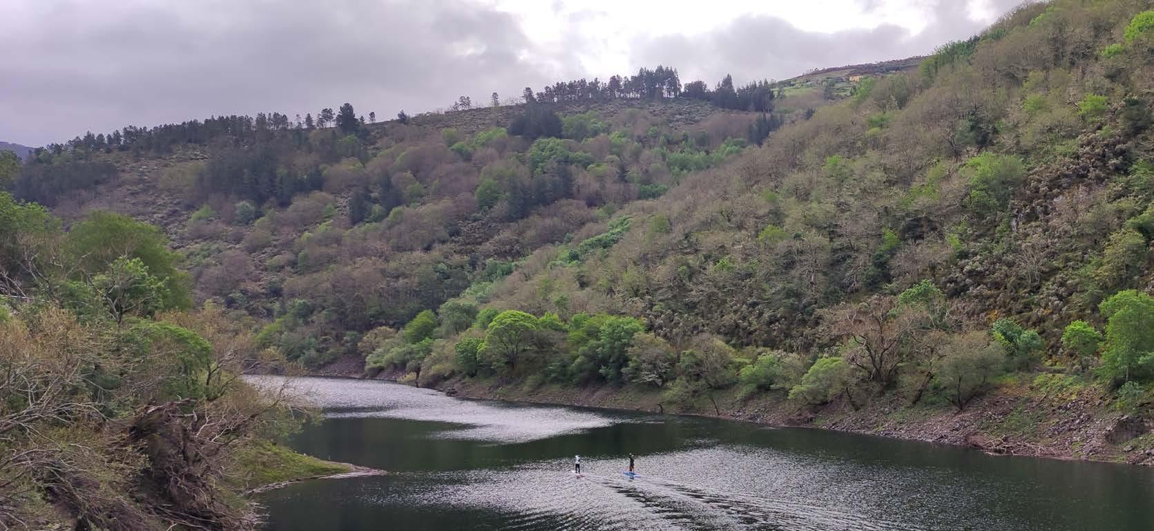 Halfway to this reservoir, we re-enter Galicia and find the first “modern” human nucleus, Nogueira de Muñiz, which surprises the visitor with a modern jetty with a small boat moored and, in front, a small busy town, Foxo, one of those that I have told you about. A real worldly pleasure to row between these two villages and ways of seeing life. Between the past and the present, there is only life, WATER.
