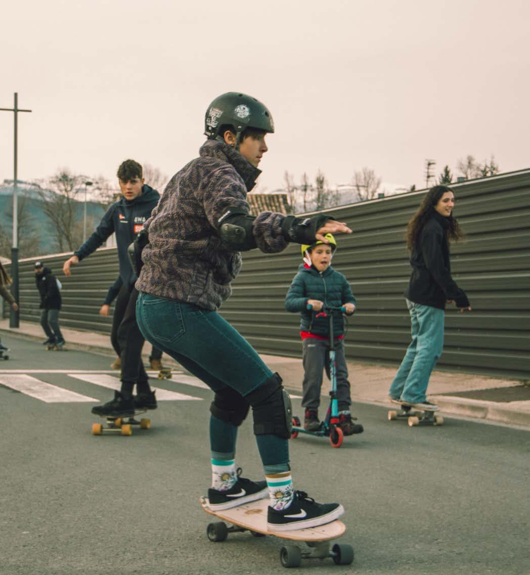 After an intense morning of sports, and enjoying a picnic in the open air to regain strength, activities resumed in the town of Aínsa with a skate and paddle land journey, ideal for combating the cold and showing great skills on the asphalt.