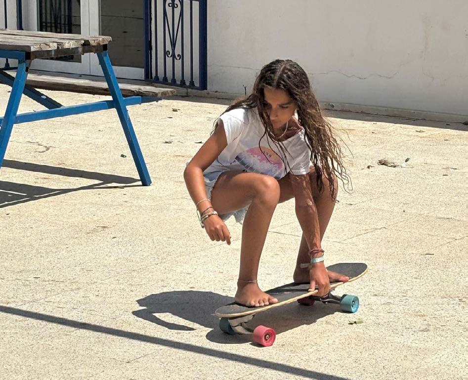 Aparte de paddle surf también voy al gimnasio con mi madre a hacer entrenamiento funcional. Cuando puedo y hay olas practico surf, también hago natación, he hecho algo de windsurf y me gusta mucho hacer surfskate. Como hobby me apasiona pintar y dibujar.