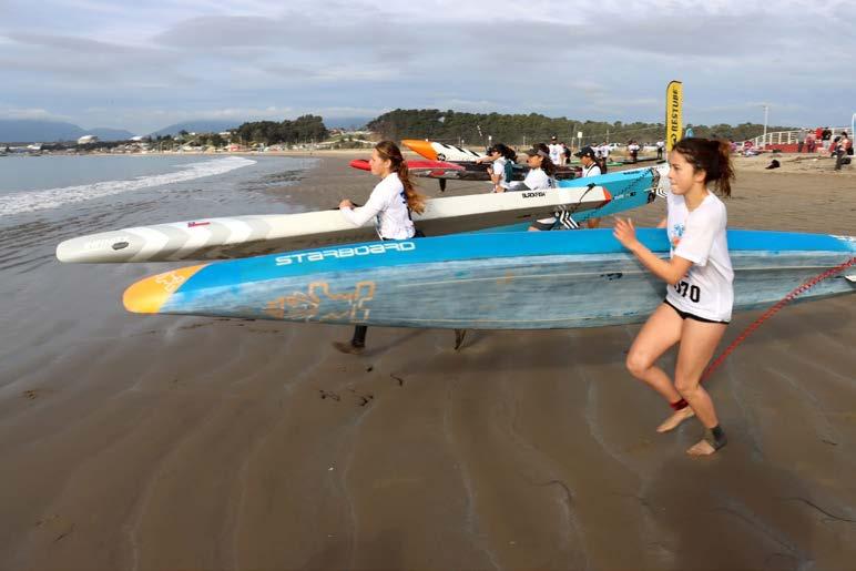 Y en cuanto a la categoría Élite y SUB 18 masculino, en esta edición realizaron dos mangas en las que se sumaban los tiempos de ambas para la clasificación final. Un circuito con giros de boyas, porteo, olitas y adelantamientos que ofrecieron mucho espectáculo a este modelo de carreras, bajo un intenso calor en esta jornada de competición. Por parte de la categoría femenina, solo se disputó una manga y con 2 vueltas al circuito.