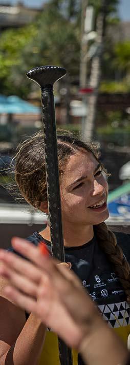 Me encanta mi equipo. Ya somos como una gran familia, siempre me están apoyando y dando buenos consejos. Viajar con ellos es muy divertido, nos lo pasamos genial y me gusta mucho hacer paddle surf con mi madre, pasamos mucho tiempo juntas y este deporte nos ha unido aún más.