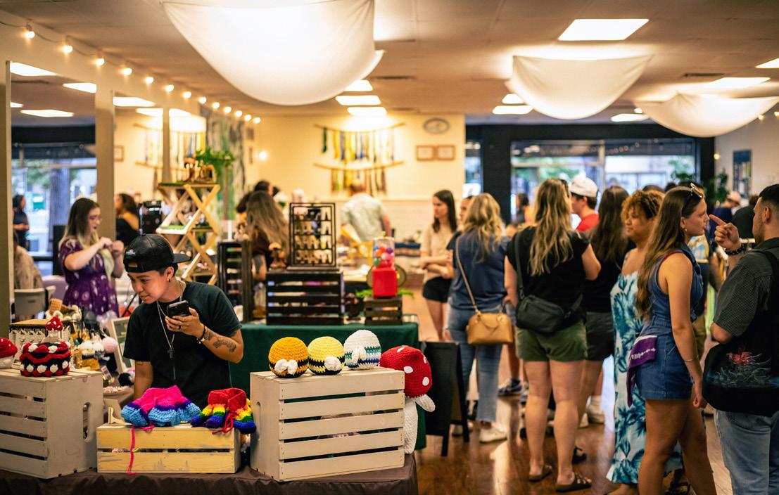 As you enter through the doors, you are greeted by a comfortable and warm space hosting a few dozen friendly faces—bakers, booksellers, knitters, vintage curators, jewelry artisans, painters, glassblowers, and more. Every step forward is an exciting opportunity for a new and intriguing connection. The variety of art and artists inspires a sense of pride and reverence at the forms of expression in our community.