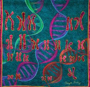 Asya Lesly created four of the 20 quilted art panels that line the corridor. Asya was diagnosed in 2012, at the age of 39, with stage 3B breast cancer. She started her treatment in her home state of Texas at Houston’s MD Anderson Cancer Center and then continued her treatment at the Enloe Health Regional Cancer Center. Here, she had a year of chemotherapy treatments along with radiation and will continue her