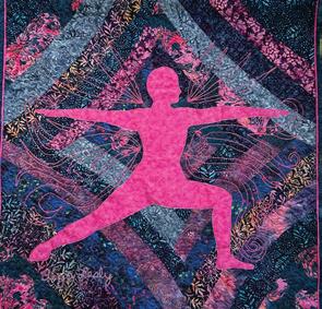 “Warrior” features a bright fuchsia silhouette in a warrior yoga pose. She shares that when she was diagnosed with breast cancer, people told her she was going to be a survivor. She countered, “Oh, I’m not going to be a survivor; I’m going to be a ninja warrior princess—with battle scars to prove it!”
