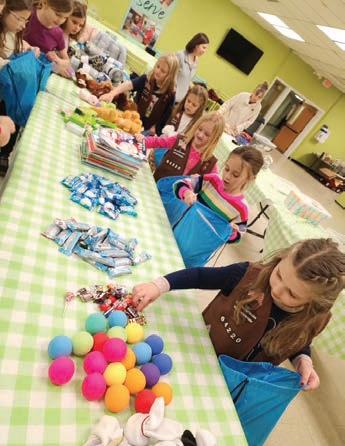 Yes, the Gathering Place has a lot of requests to help from scout troops, sports teams, and neighborhood groups, but there is always room for more! As sevenyear-old Hattie says, “I was excited to put things in bags that people need, because it will put a smile on their face. I feel super helpful because we give people stu they really need.”