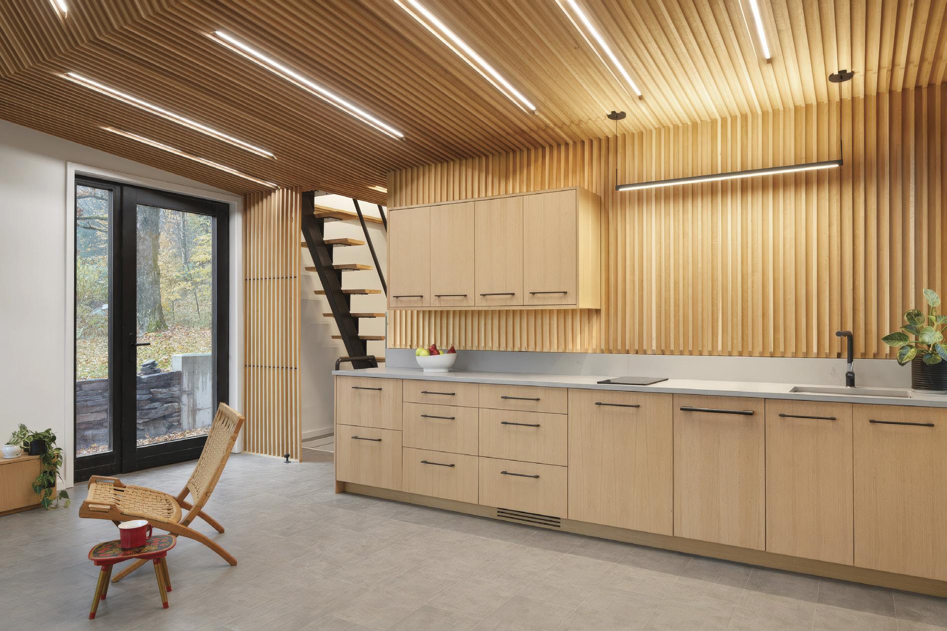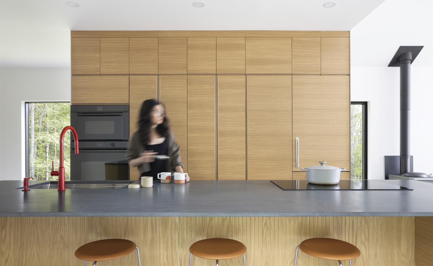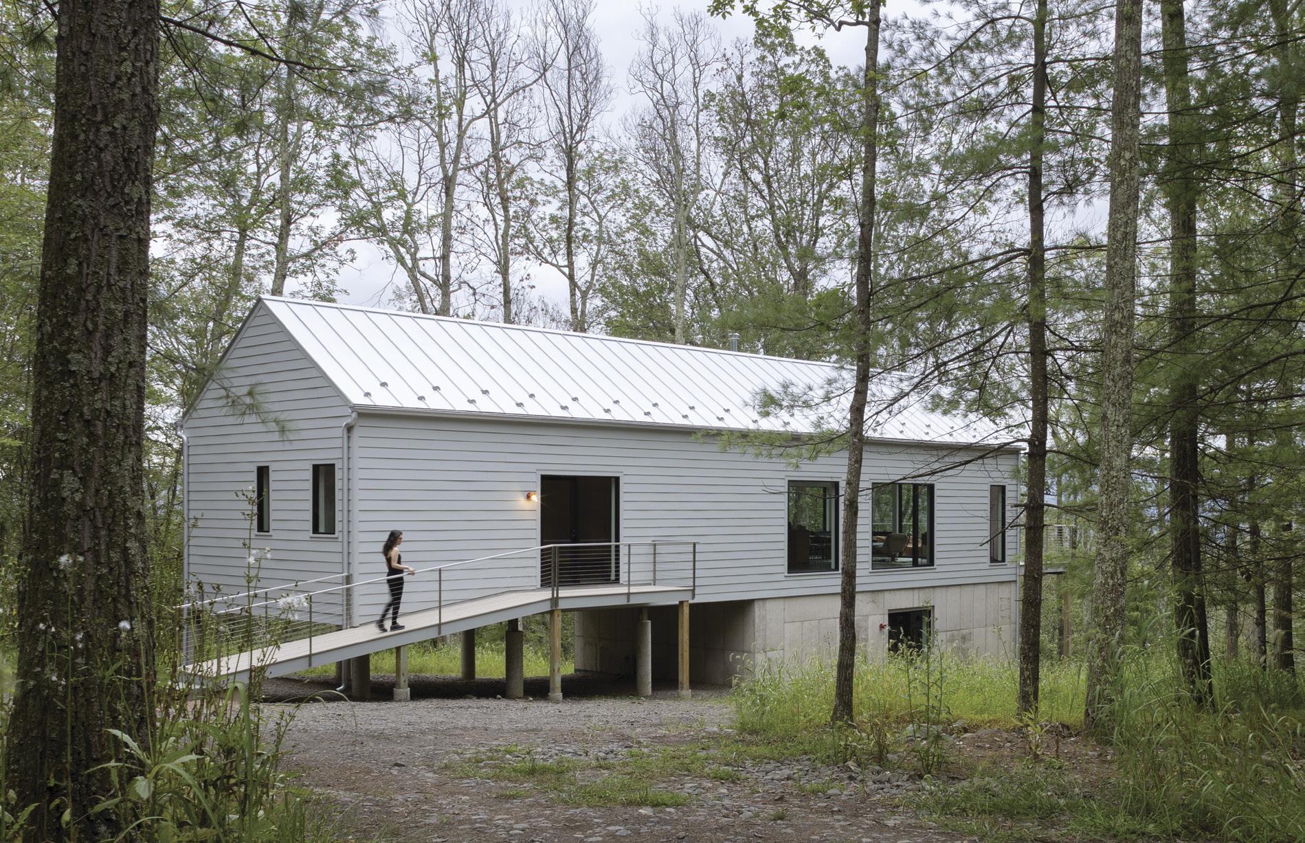 Architect Leah Solk designed this Kerhonkson retreat with an analytical yet intuitive approach, creating a minimalist, site-sensitive home that maximizes function, adaptability, and natural beauty while rejecting fleeting design trends.