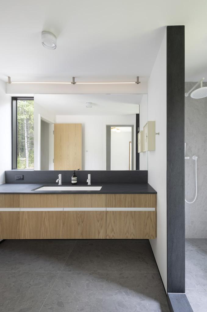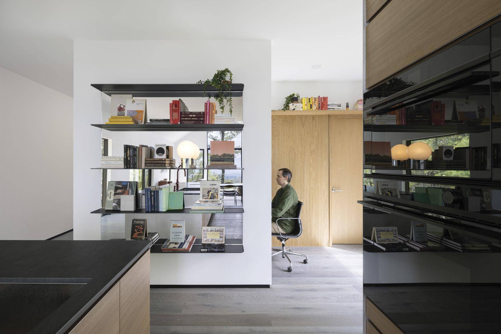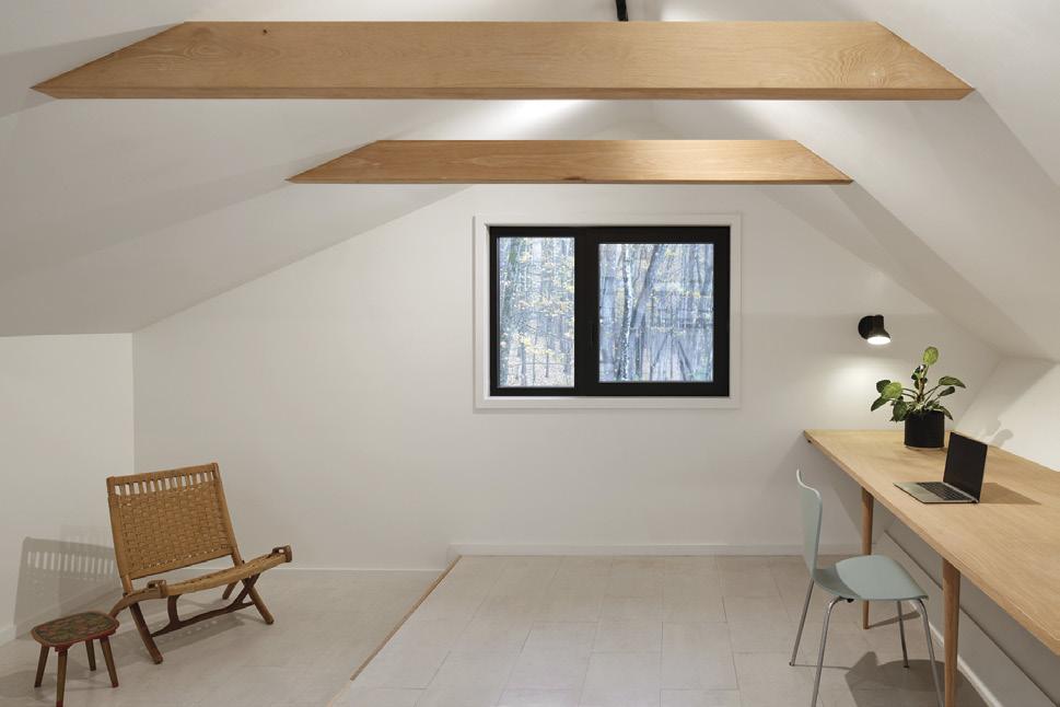 Downstairs, Solk incorporated a guest room and a studio space for drawing and the occasional weekend design project. Working with and within the Hudson Valley landscape was rewarding for Solk. “This design might not be right for everybody, but that’s what makes it such a joy,” she says. “It’s completely customized to how we live. Architecture should appear effortless and it’s very rewarding that the house functions that way.”