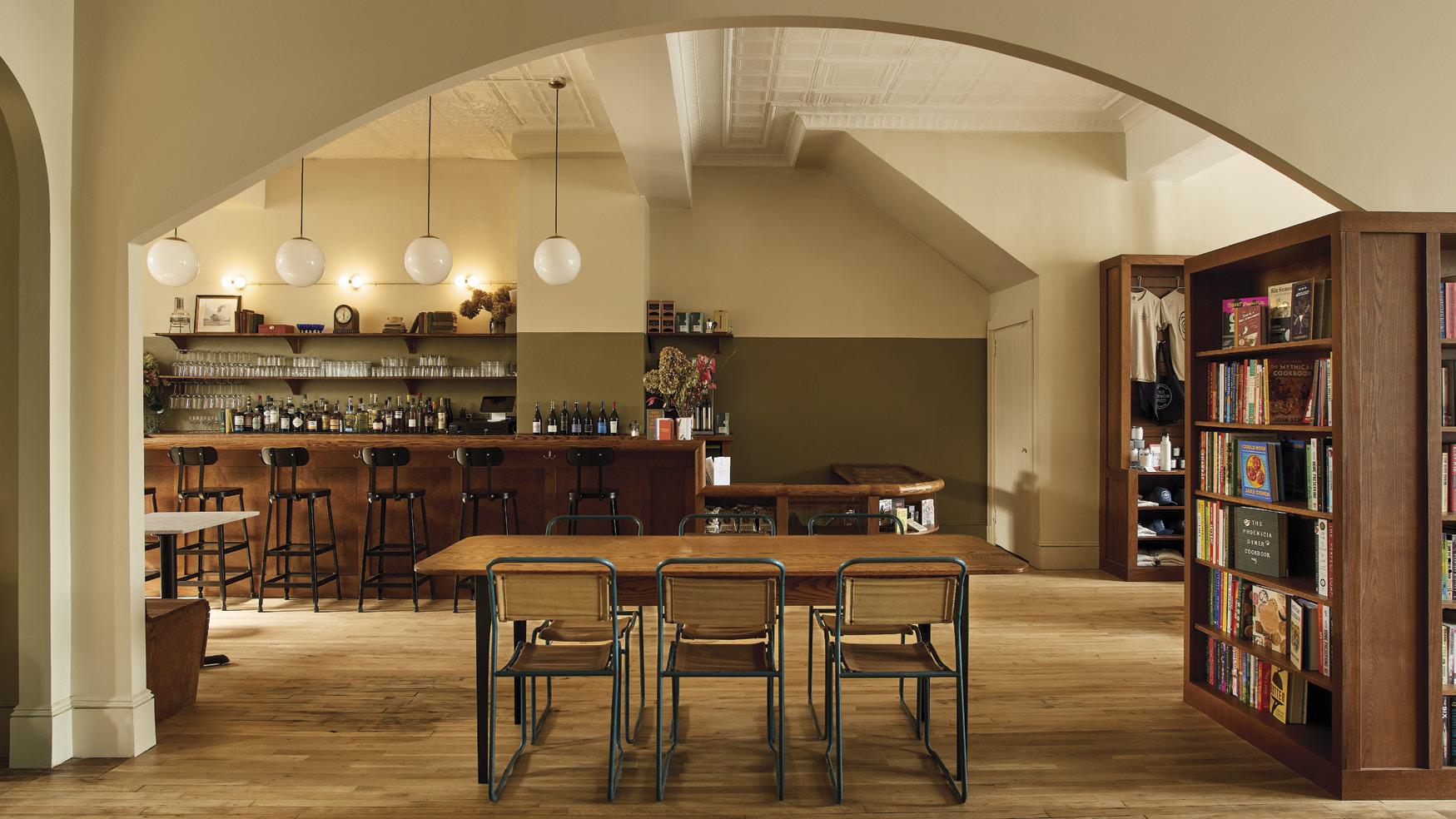 A thoughtfully designed bookstore-bar hybrid, The Common Good fosters community with cozy nooks, a grand oak bar, and literary charm.