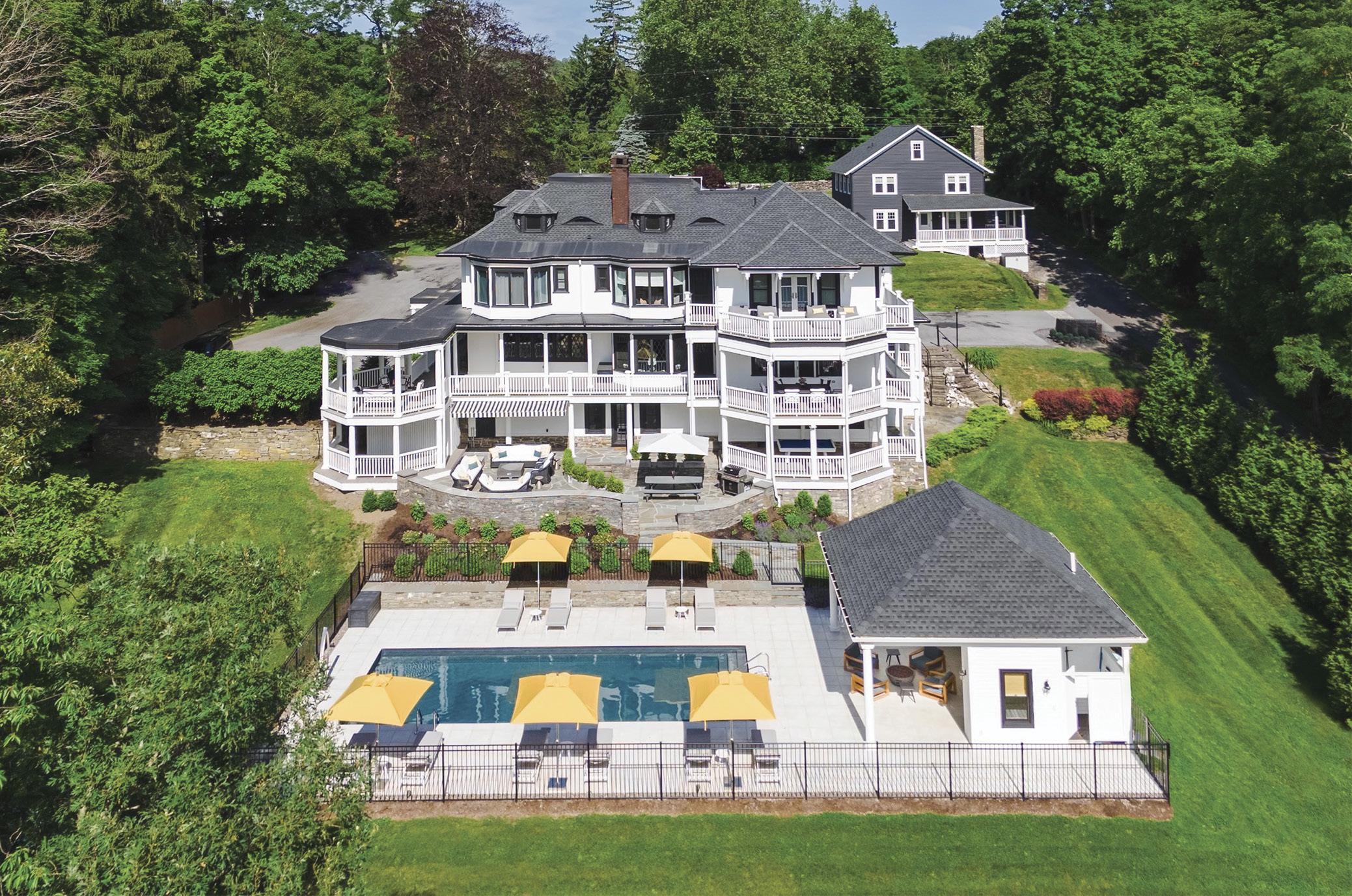 pool. In addition, there’s a 2,800-square-foot carriage house that has been configured into two apartments. In winter, the back of the house offers sweeping views of the Hudson River and the Vanderbilt estate across the water.