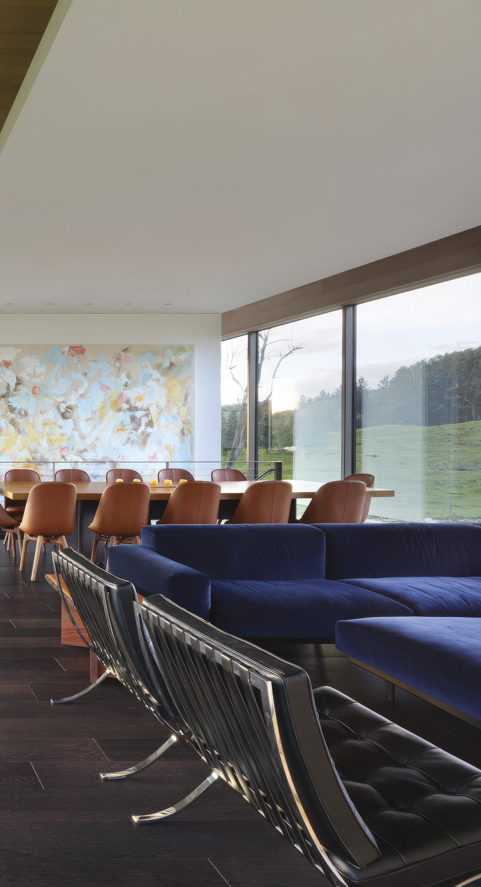 “Those farm stone walls that you see throughout Dutchess County and the Corten steel [shutters] reminded us of when you see farm equipment that’s been left out, and it gets that beautiful patina,” says Hayes.