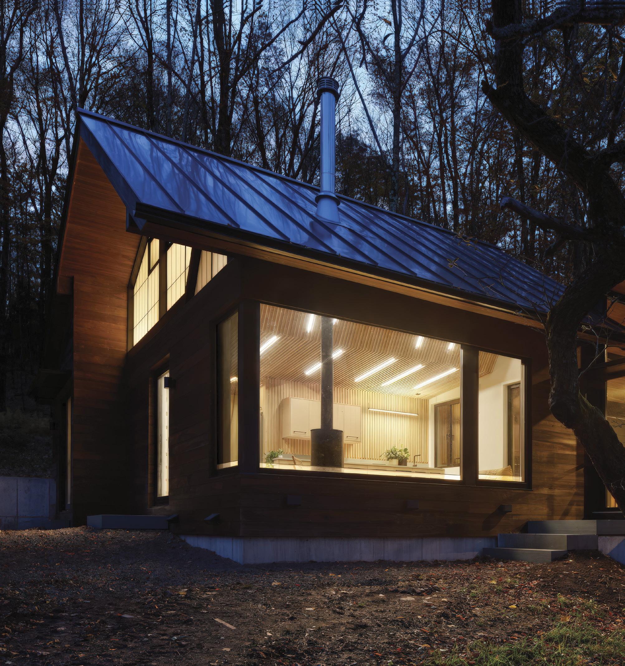 A screened-in porch dream grew into a striking woodland retreat in Andes, designed by architect Lynn Gaffney. Featuring a cantilevered porch, Passive House principles, and locally sourced materials, the cabin seamlessly blends in with its forested surroundings. Thoughtful details—like a sculptural loft and rotating wood stove—make this Catskills escape both grounded and elevated .