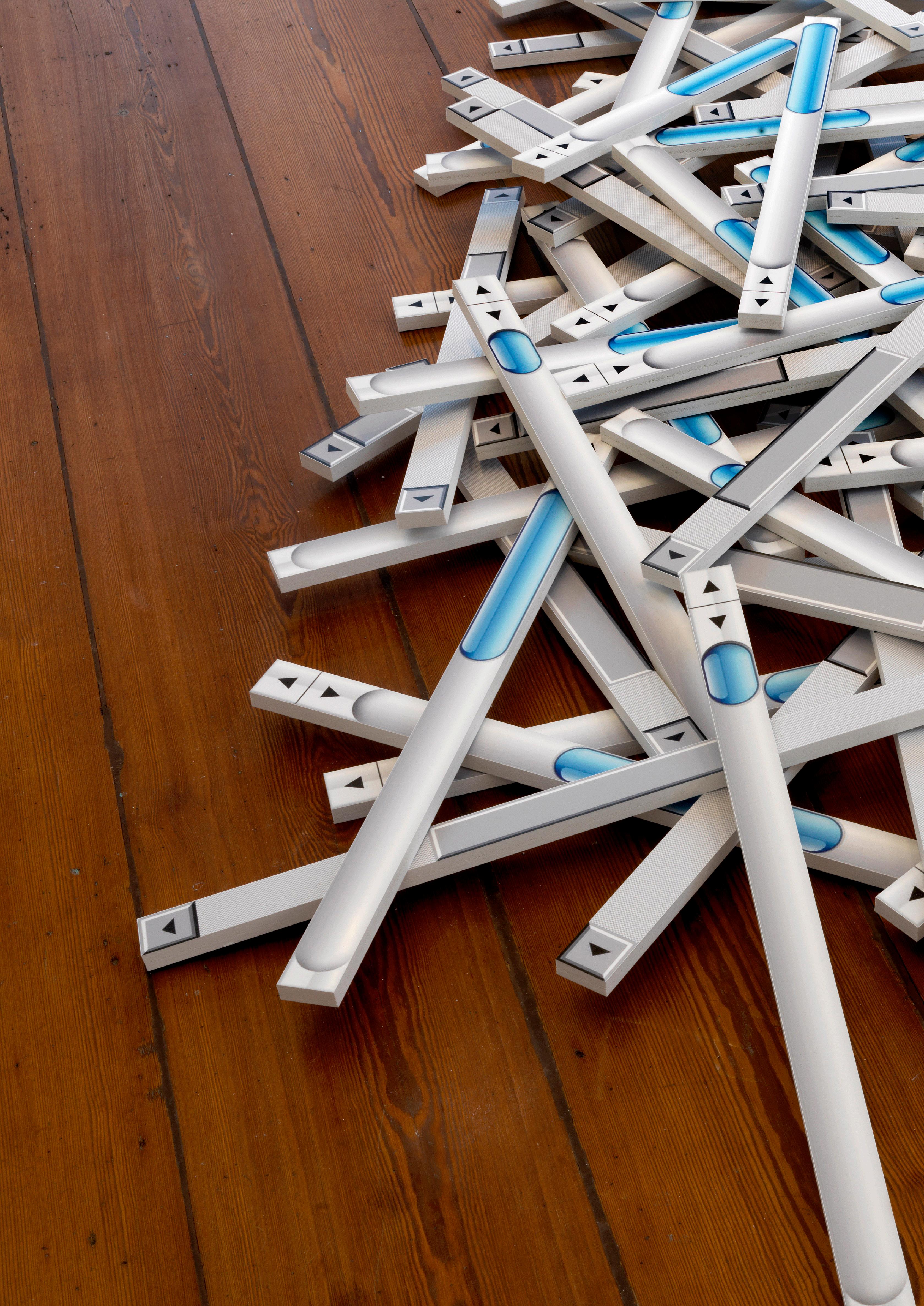 Washed ashore from decades ago are numerous obsolete scrollbars. A scrollbar is an interface to a content space. A set space that can be moved around for us to explore it. With the scrollbar decoupled from its original purpose, it points to nothing, becoming a broken link. It becomes a sculptural entity with an empty space as an appendix. Leaving behind the memory of decades of internet culture.