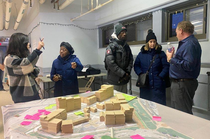 Following the initial resident and stakeholder meetings, the development team began a process of due diligence, analyzing and evaluating the existing building systems and estmating the costs of renovation versus new construction. This analysis revealed that the costs to build new are comparable to renovation, while allowing for fewer unknowns and less disruption for the residents. These findings were discussed with residents in early February of 2023 in preparation for a design workshop. The workshop, which took place in late February and early March of 2023, focused on a new construction solution. During the workshop, residents participated, providing their design ideas for units, buildings, amenities, and the site.