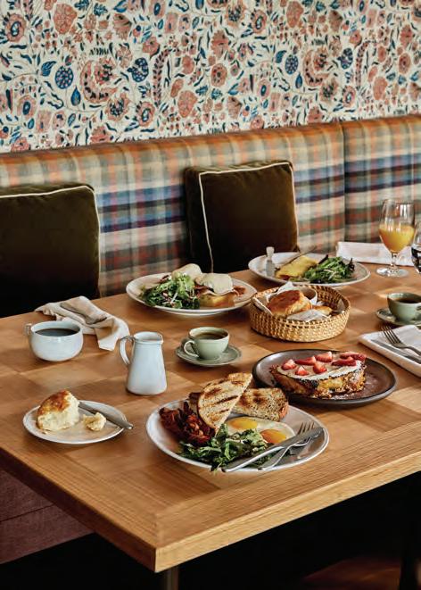 and tall ceilings and large windows that allow natural light to stream in. We brought our love of the outdoors inside with photographs of one of my favorite rivers, the Holston River, not far over the state line in Tennessee, and an ombre mural by a North Carolina artist to mimic the variations of green you see in a river. We’ve sourced all kinds of antique fly-fishing equipment like rods and reels and decor. Of course, we’ll include some of our signature roosters.