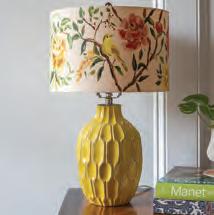 “My bespoke painted and fabric-patterned lampshades add a beautiful pop of color. I love that these can be customized to each person.”