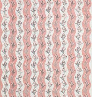 TOP ROW: Farrow & Ball Setting Plaster. Schumacher Lily Fabric In Sage. Ottoline Tuscan Stripes. CENTER ROW: Ottoline Chintamani Trellis. Pierre Frey Rug. Farrow & Ball Card Room Green. BOTTOM ROW: Thibaut Club Velvet Fabric In Cloud. Nina Campbell Sidney Stripe Drapery Fabric. Farrow & Ball Rectory Red.