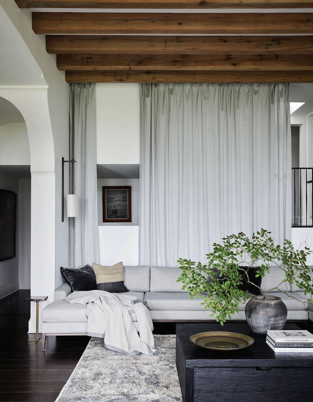 sanctuary from the summer heat. The expansive window in the living room caught the homeowner’s eye, and she knew right then that the Charlotte Moss draperies would finally have a home.