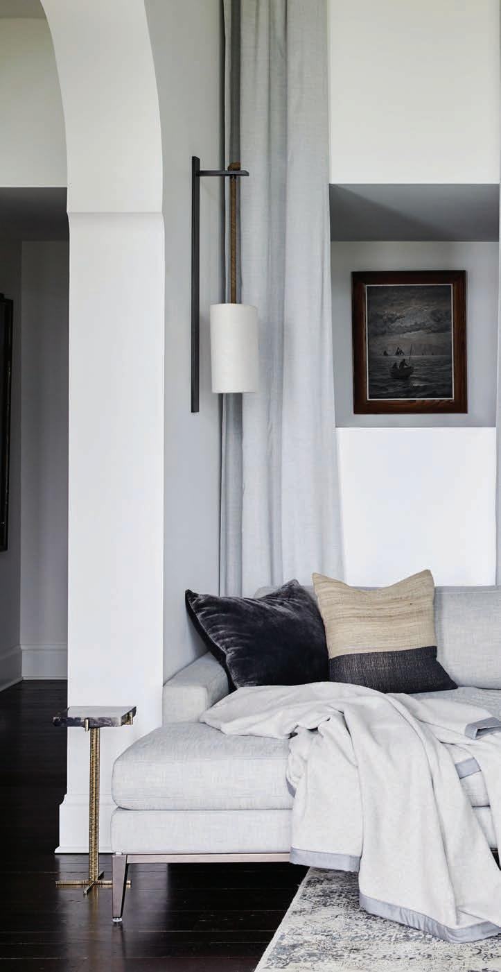 Clark and Buchanan agree that their favorite space in the home is the combined sitting/dining room by the fireplace. It can be seen immediately when you enter the home, with floorto-ceiling windows that offer breathtaking views of the marsh just beyond and the old oak tree at the center. “The scale of this space truly does regulate your nervous system somehow,”