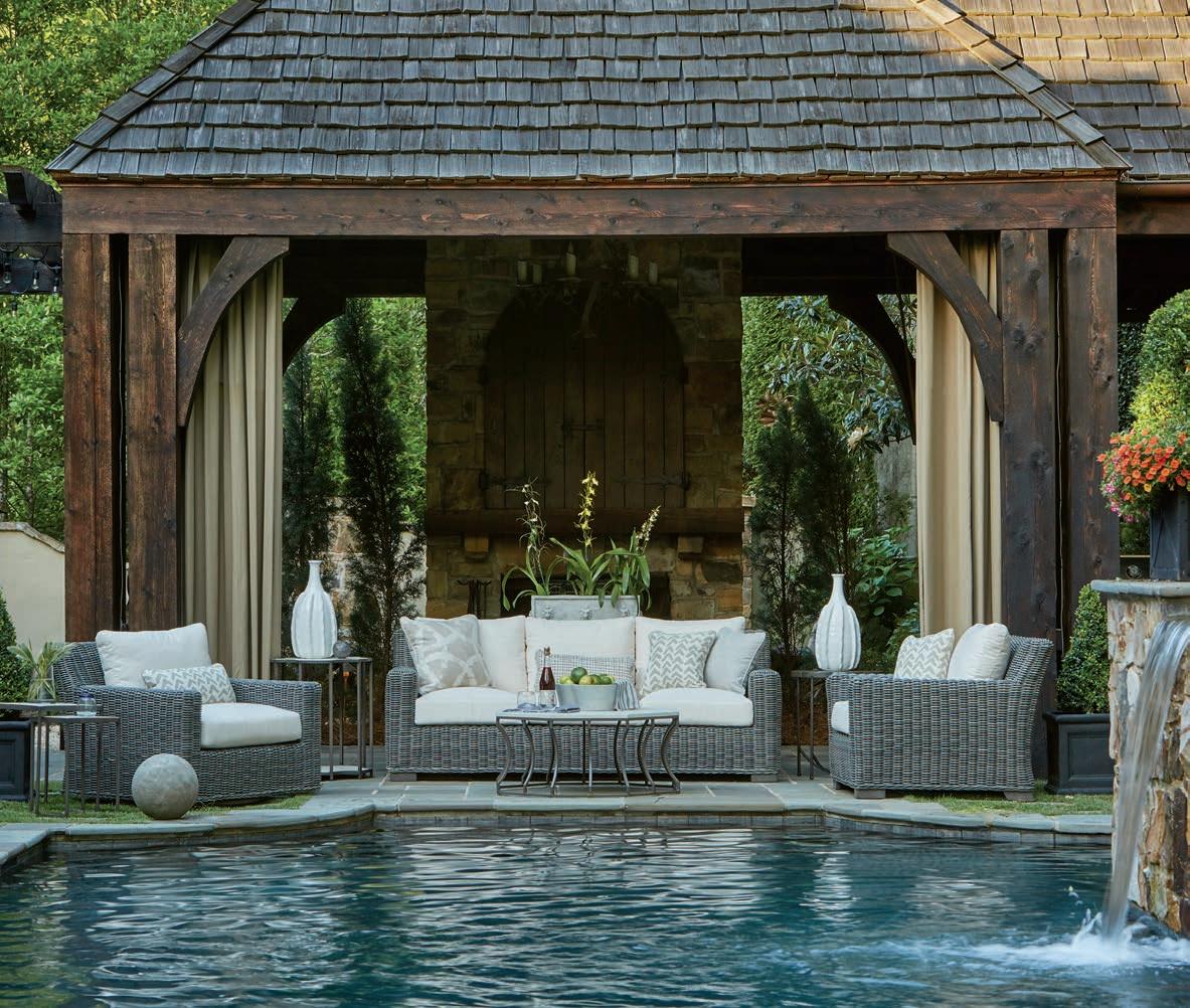 “It should be about having fun, throwing parties, relaxing, and enjoying meals al fresco. These are not stuffy occasions,” says Henegan. “Outdoor living means barefoot elegance— being carefree and comfortable yet stylish and sophisticated.”