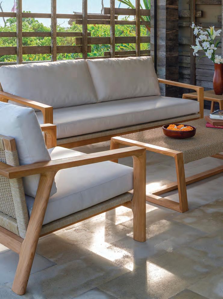 materials and furniture featuring mixed elements, such as metal with rope or teak with wicker. “To address the demand, we have added a new teak furniture manufacturer, Kingsley Bate, to our showroom this year. We continue to offer a wide range of material choices, including aluminum, wrought iron, outdoor-grade wicker, wood, and synthetic wood furniture. In addition to the products in our showroom, we can order from manufacturers’ catalogs to help homeowners searching for a specialty look,” Jacob says.