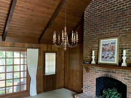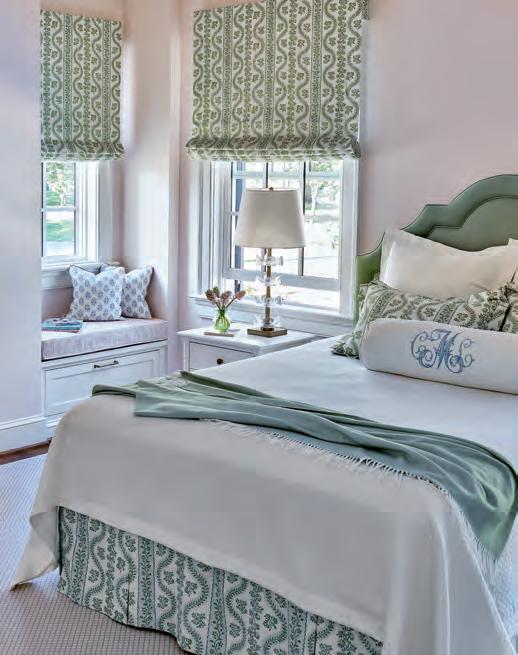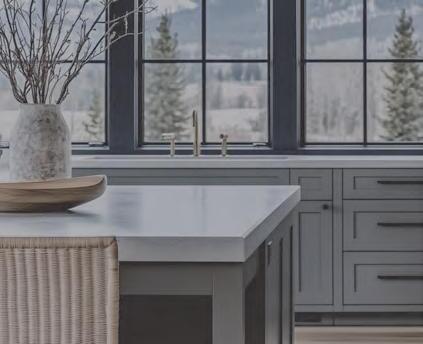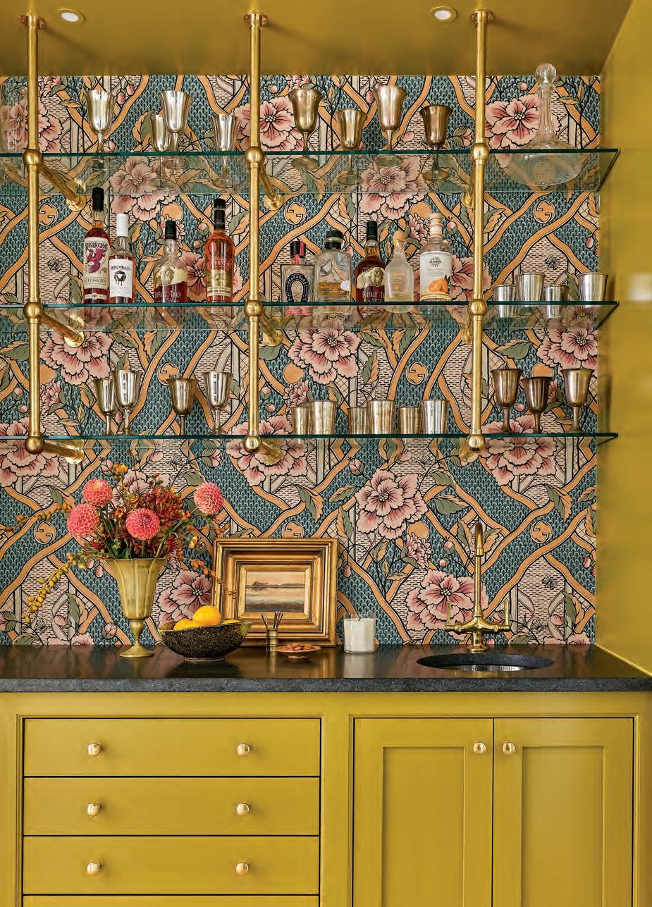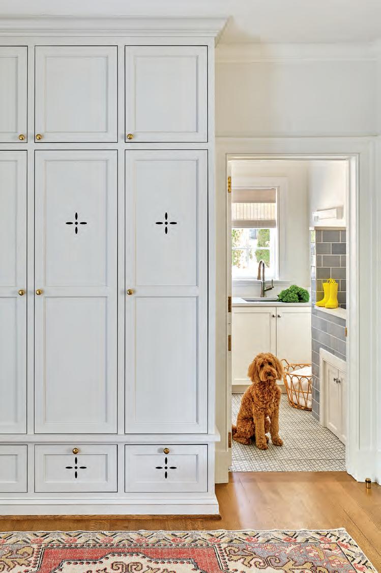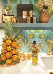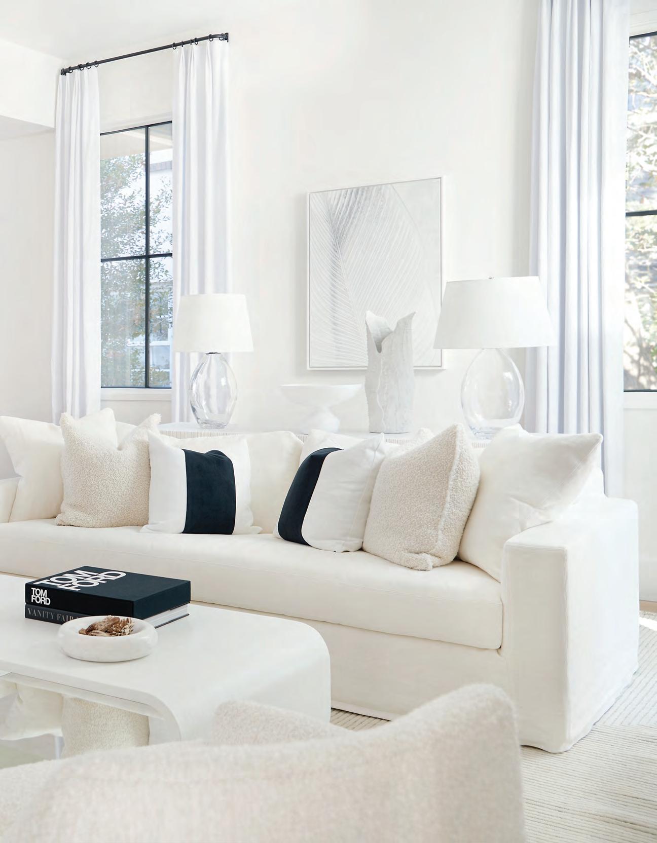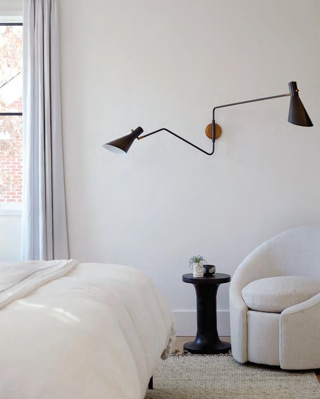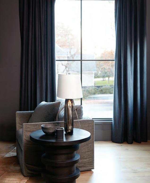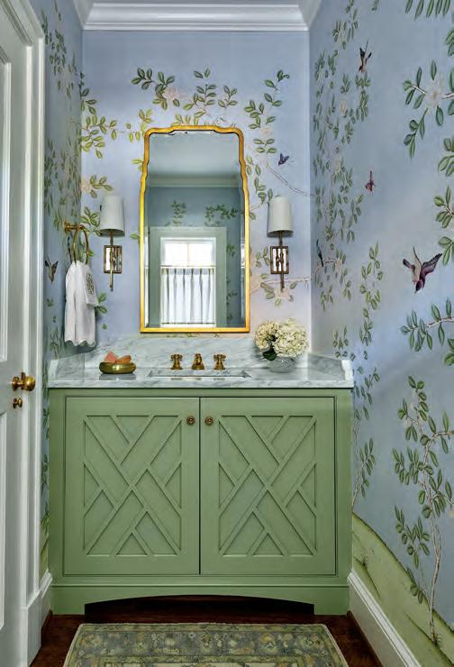 DESIGNER MARTHA SCHNEIDER of La Maison wanted to create a timeless and functional home for a family of four, focusing on comfort while keeping traditional flair. To achieve this, Schneider incorporated various finish details, luxurious paint colors, lighting, wallpaper, fabrics, and trims to connect the home’s rich history to modern living. The kitchen and living room were separate and closed off in the original floor plan, but by opening both rooms, Schneider created a more spacious and lightfilled environment. This older home begged for contemporary updates throughout. The fireplace was redesigned with traditional details for a modern family and an elevated look that complemented the triumphant vaulted ceilings, which draw the eye upward. The result is a stunning transformation that made this home both a reflection of its historical roots and a warm, inviting space for modern family living.