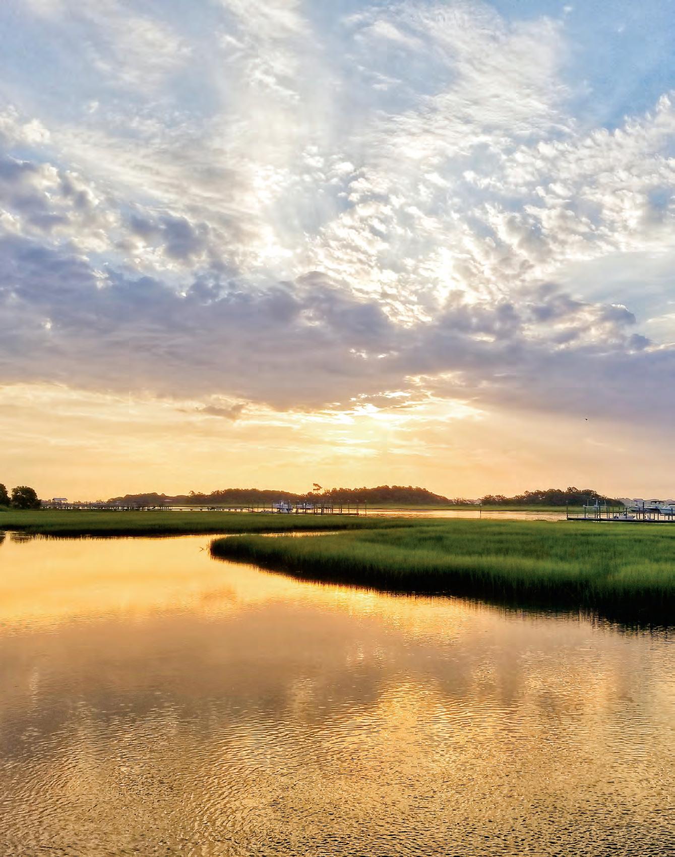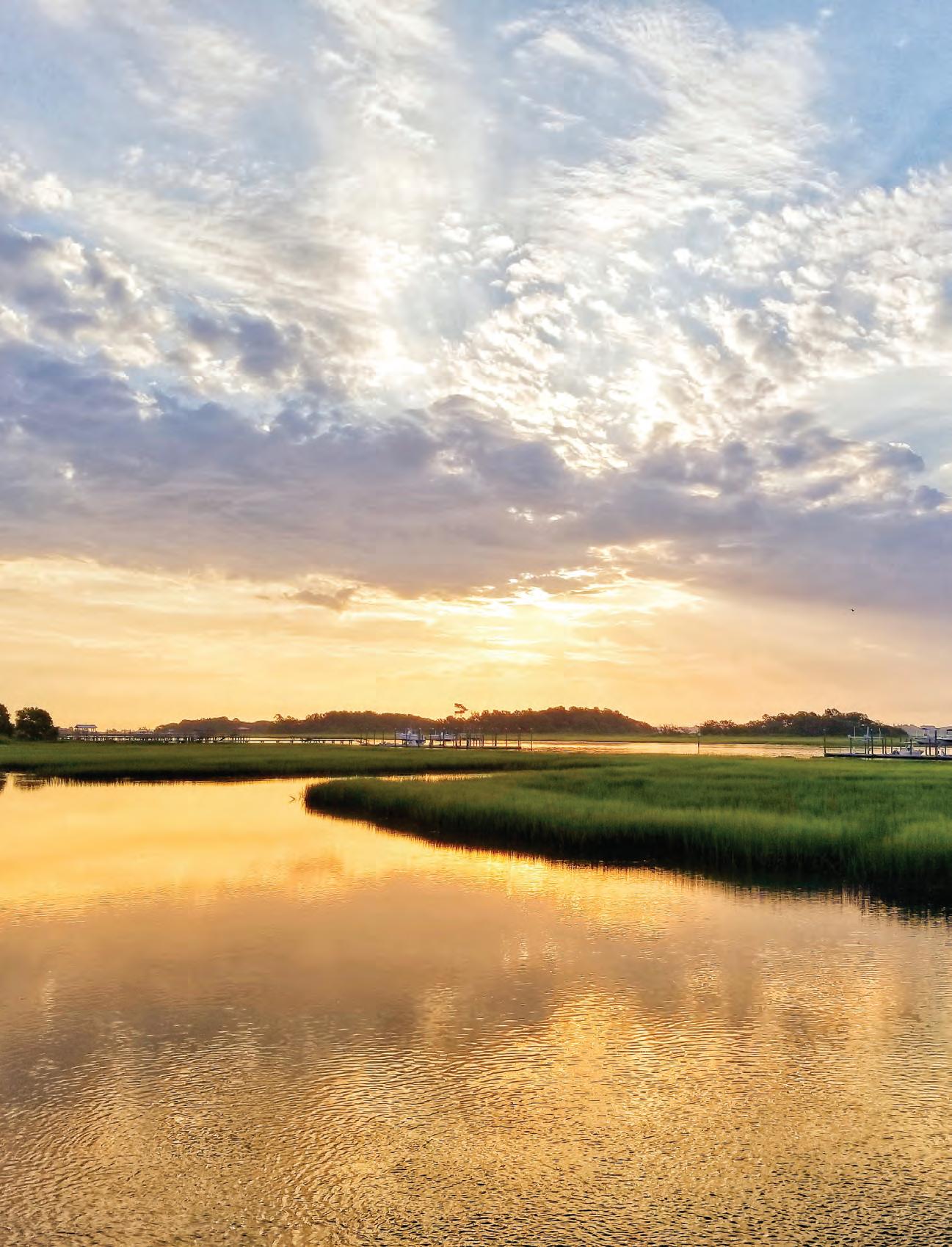 Jump on I-40, and in two hours you can exhale, listen to the rolling waves of the Atlantic Ocean, enjoy a peaceful boat ride on the Intracoastal Waterway and catch the most magni cent sunsets over the marsh.