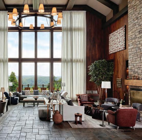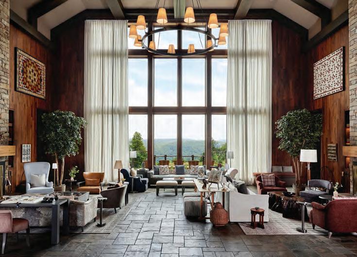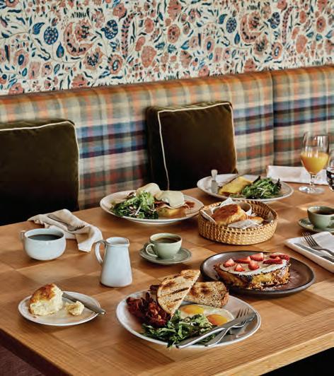 As part of the resort’s refresh, the main dining option received a makeover and was renamed Leatherflower. The timeless grasscloth wallcoverings coupled with classic florals and plaids set the tone for an elevated dining experience spearheaded by Chef Zach Long. Seasonal menus showcasing ingredients from the property’s farm and greenhouse, as well as local mills and farms, elevate the dining experience.