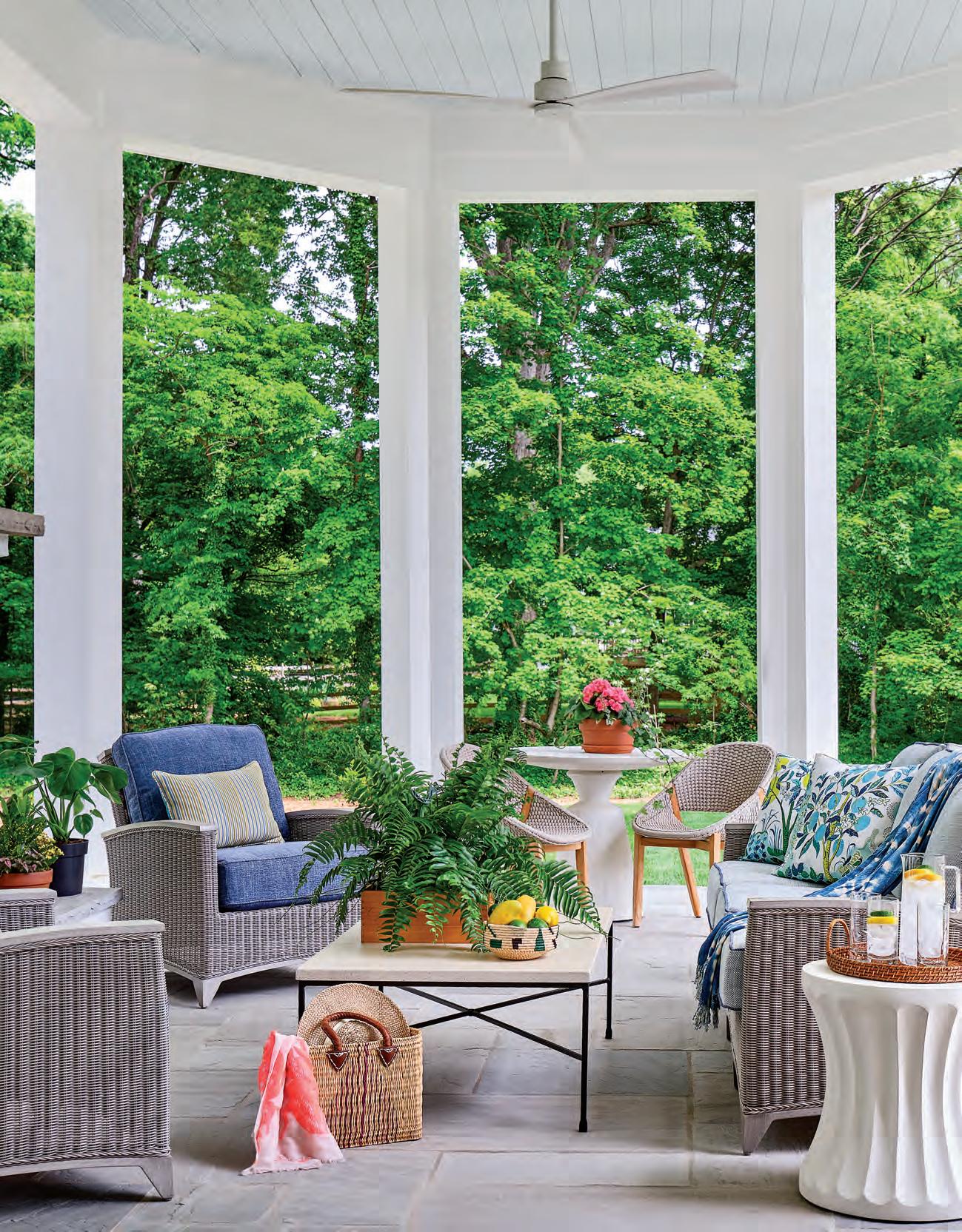 True to its purpose, the home is a hub of activity for the grandchildren, who often come over on the weekend to play soccer in the yard or watch football and baseball games in the sunroom. “So many great memories will be made there,” says Cox.