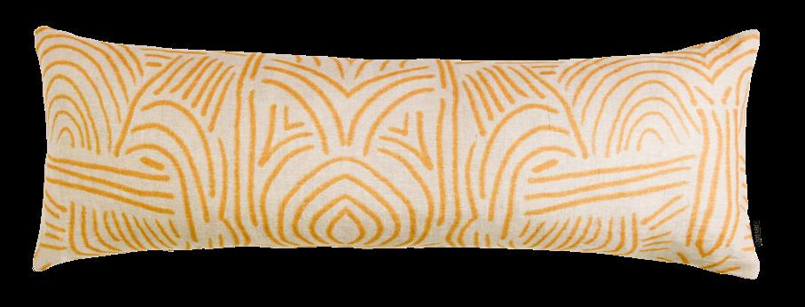 DIGITAL PRINT LINEN CUSHION CRL26 TIKI HUT MUSTARD LONG LUMBAR
