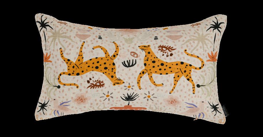 DIGITAL PRINT LINEN CUSHION CRL23 LEAPING LEOPARDS LUMBAR