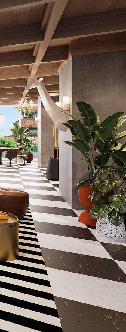 Los bordes de la losa se redefinieron para generar distintos espacios de doble altura y columnas que rompen con las líneas rectas de la fachada. Las jardineras añadidas y la vegetación en las columnas crearán un exterior exuberante, lleno de plantas que brindarán una sensación de bienestar a los residentes y transeúntes.
