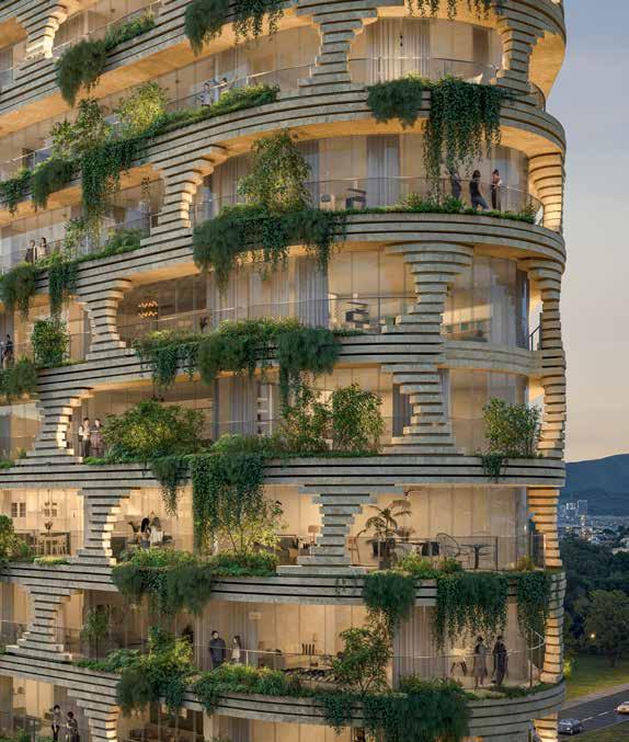 Una torre que desdibuja la frontera entre la naturaleza y la arquitectura, expresando el paisaje natural dentro del entorno urbano. Es un refugio donde cada forma y textura evocan reverencia tanto por el mundo natural como por la ingeniosidad humana.