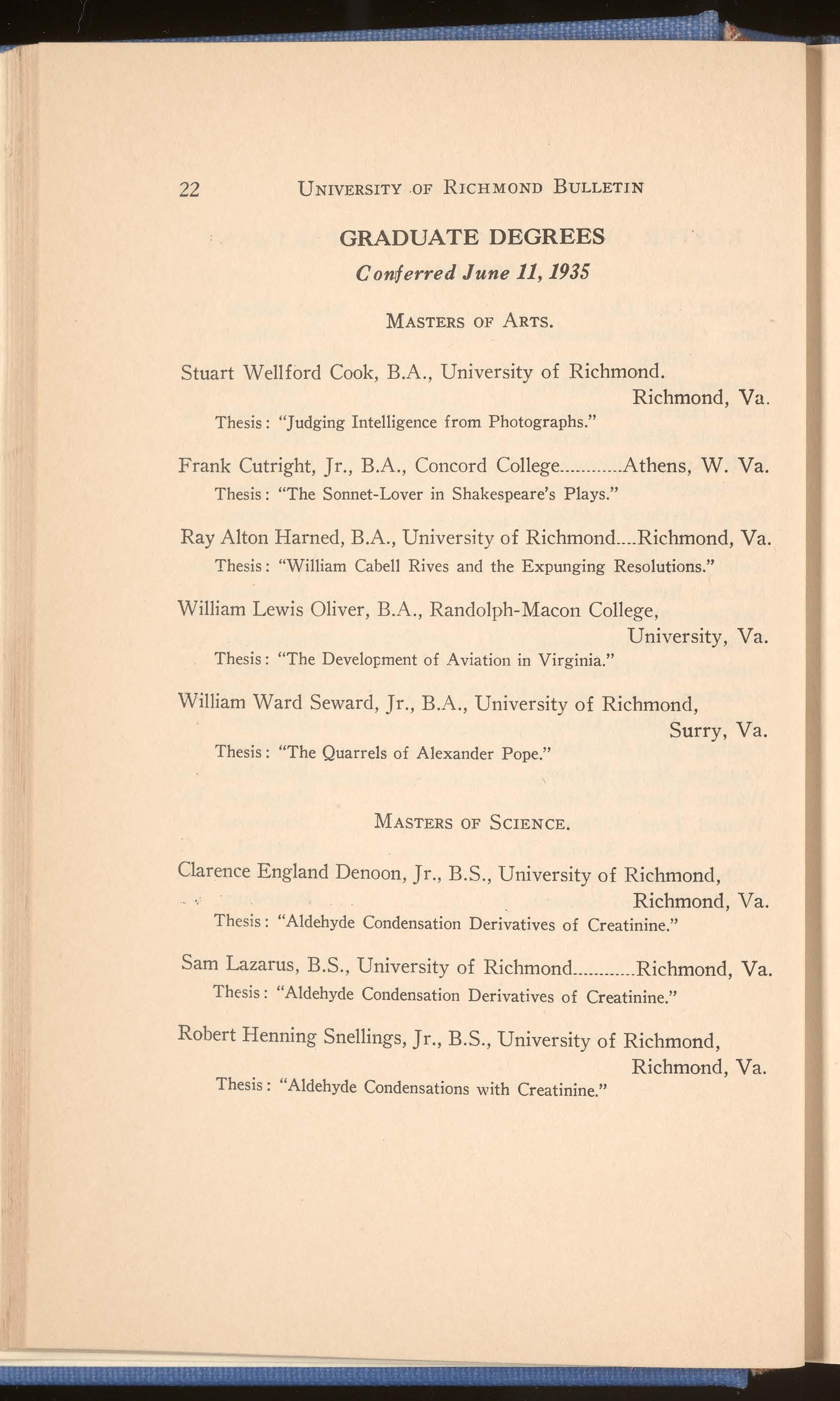 UNIVERSITYOF RICHMONDBULLETIN 19