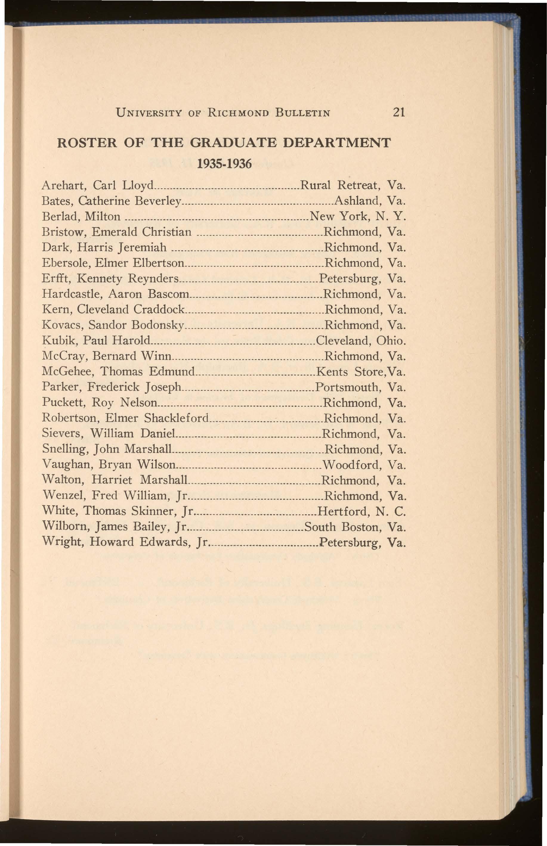ROSTER OF THE GRADUATE DEPARTMENT 1935-1936