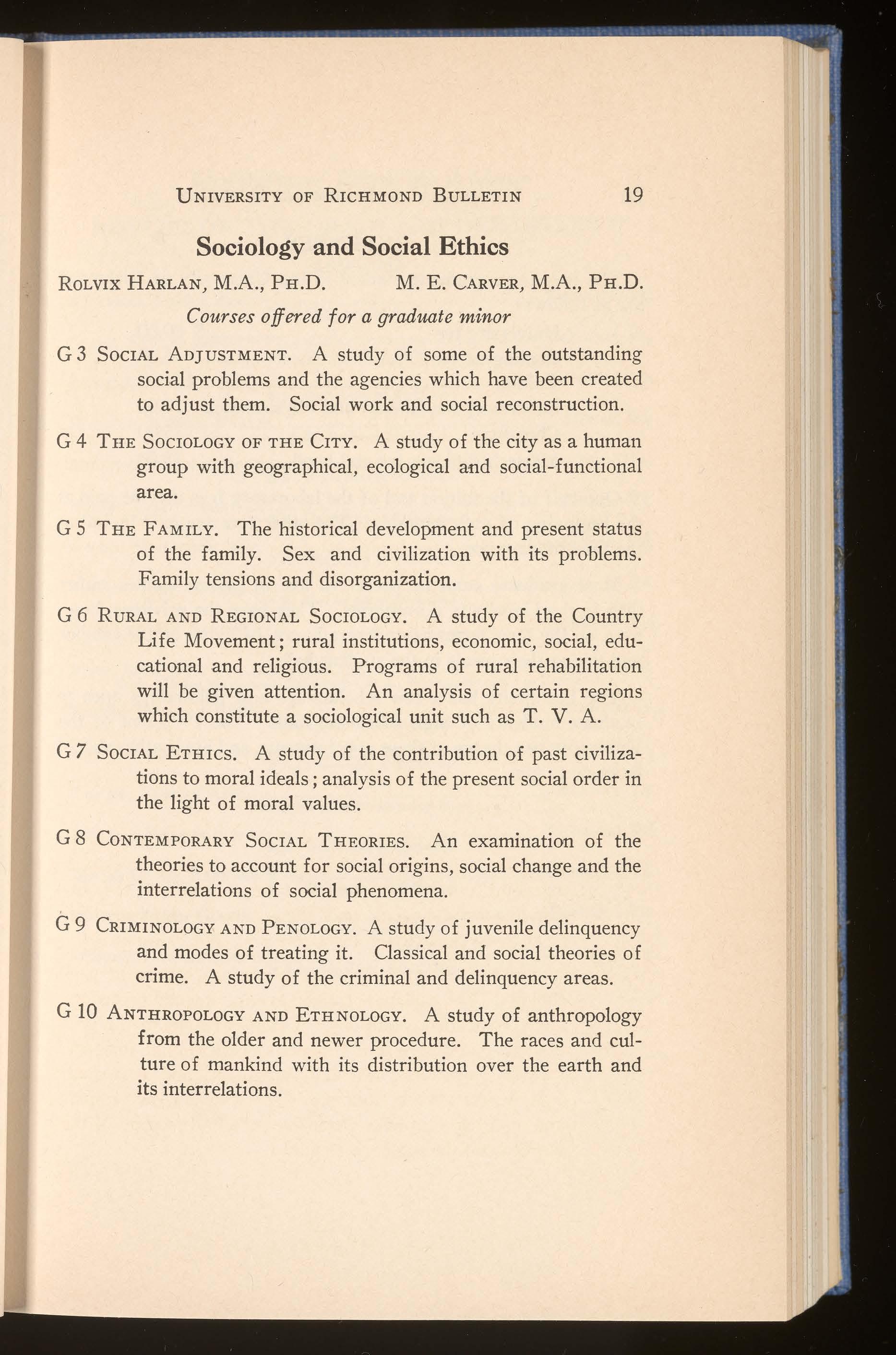 G 10 SocIAL PHILOSOPHY.A study of the relation of the individual to the group; the various types of social theory as aflecting such social units as the family and community, business and economic life, law and the state, international relations, and involving theories of the philosophy of history, of education and of religion.