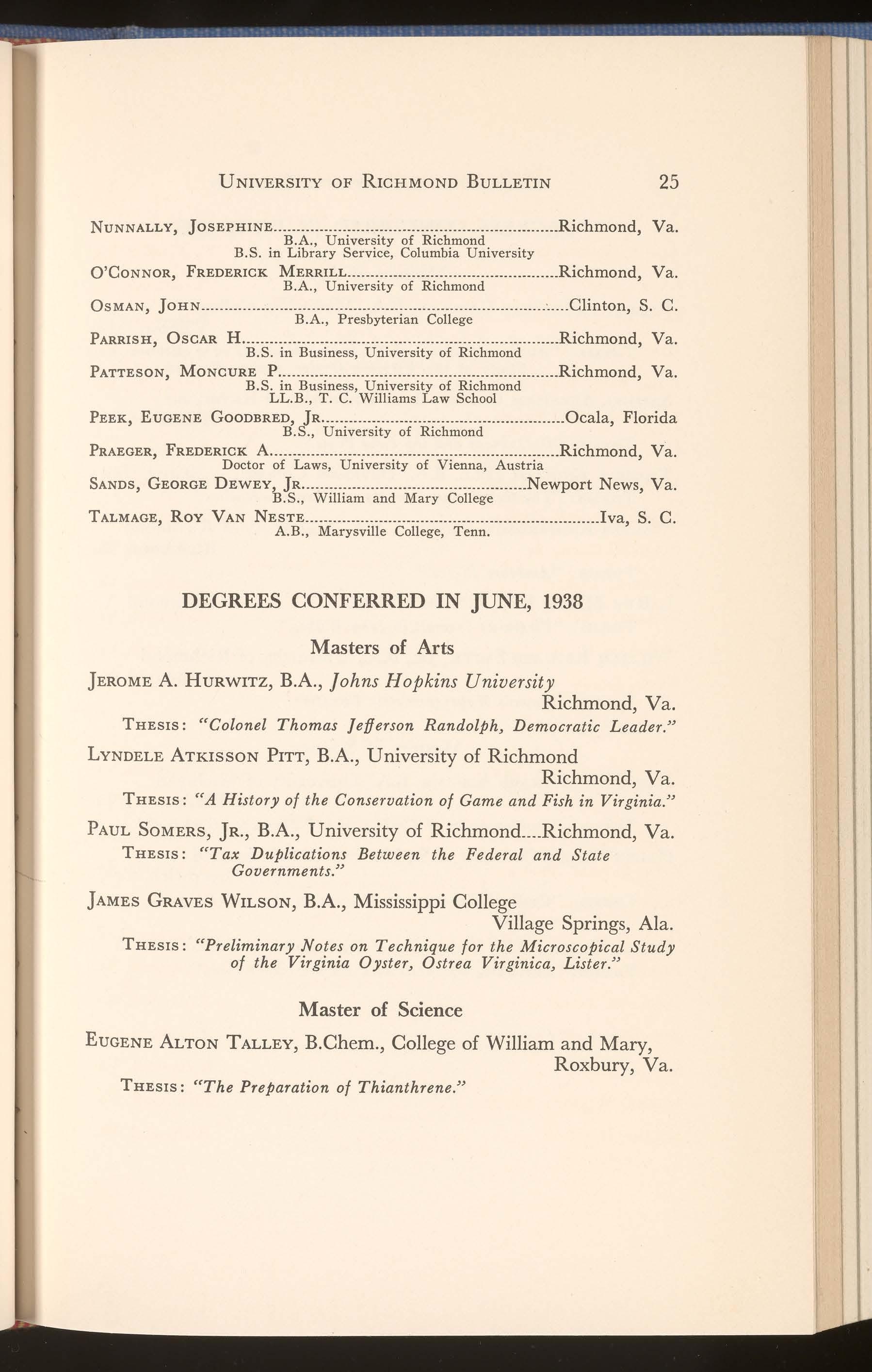 UNIVERSITY OF RICHMONlJ VIRGINIA