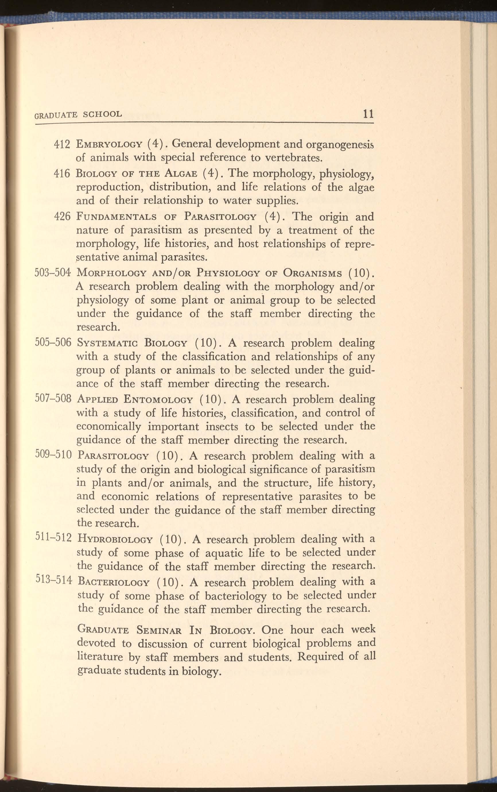 509-510 PARASITOLOGY ( 10). A research problem dealing with a study of the origin and biological significance of parasitism in plants and/or animals, and the structure, life history, and economic relations of representative parasites to be selected under the guidance of the staff member directing the research.