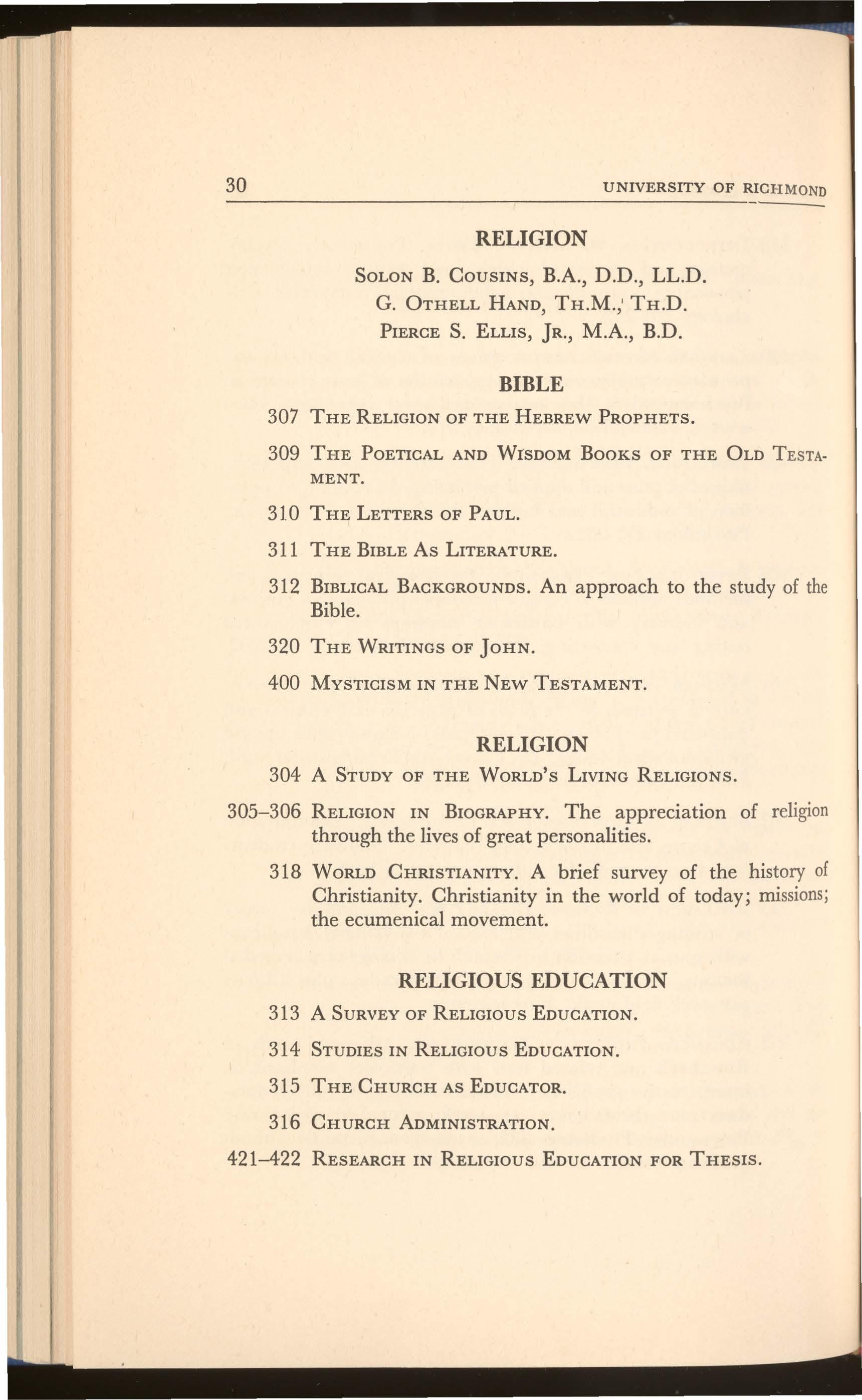 SOLON B. COUSINS, B.A., D.D., LL.D. G. 0THELL HAND, TH.M.,' TH.D. PIERCE s. ELLIS, JR., M.A., B.D.