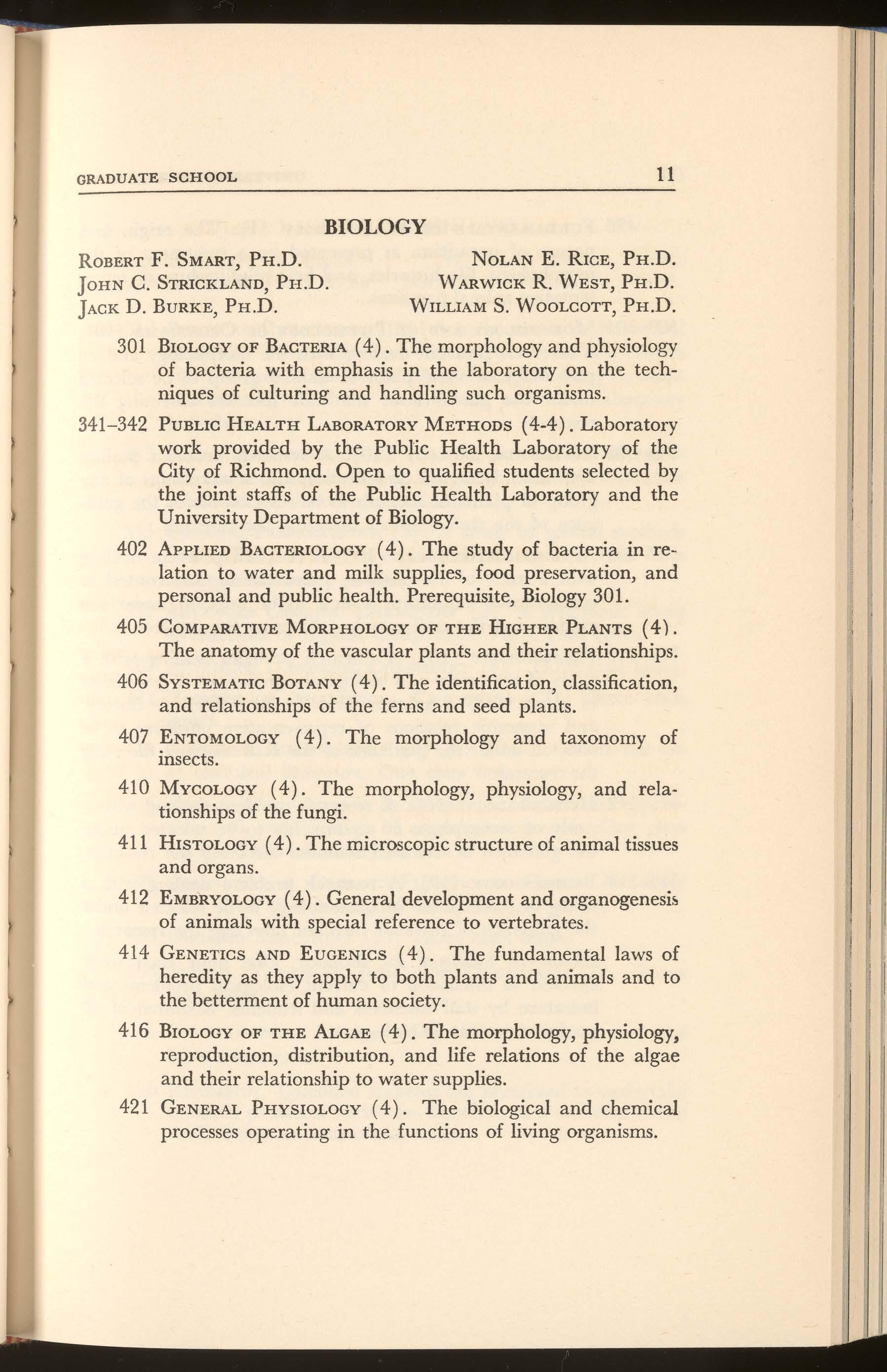 34 1-342 PUBLICHEALTH LABORATORYMETHODS (4-4). Laboratory work provided by the Public Health Laboratory of the City of Richmond. Open to qualified students selected by the joint staffs of the Public Health Laboratory and the University Department of Biology.