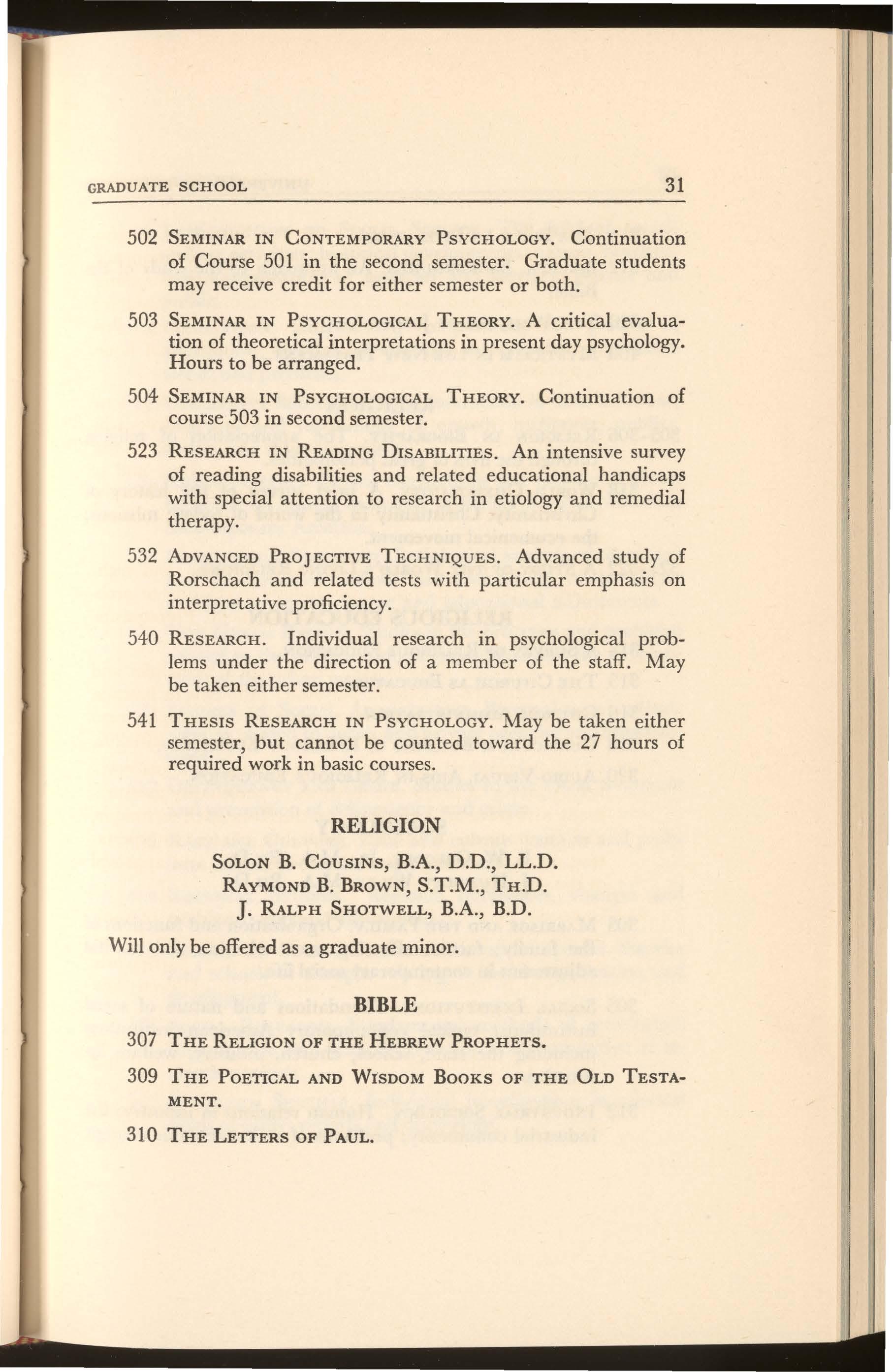 Thesis: "A Study of the Relationship Between the Freshman Testin g Program and College Success at the University of Richmond .''