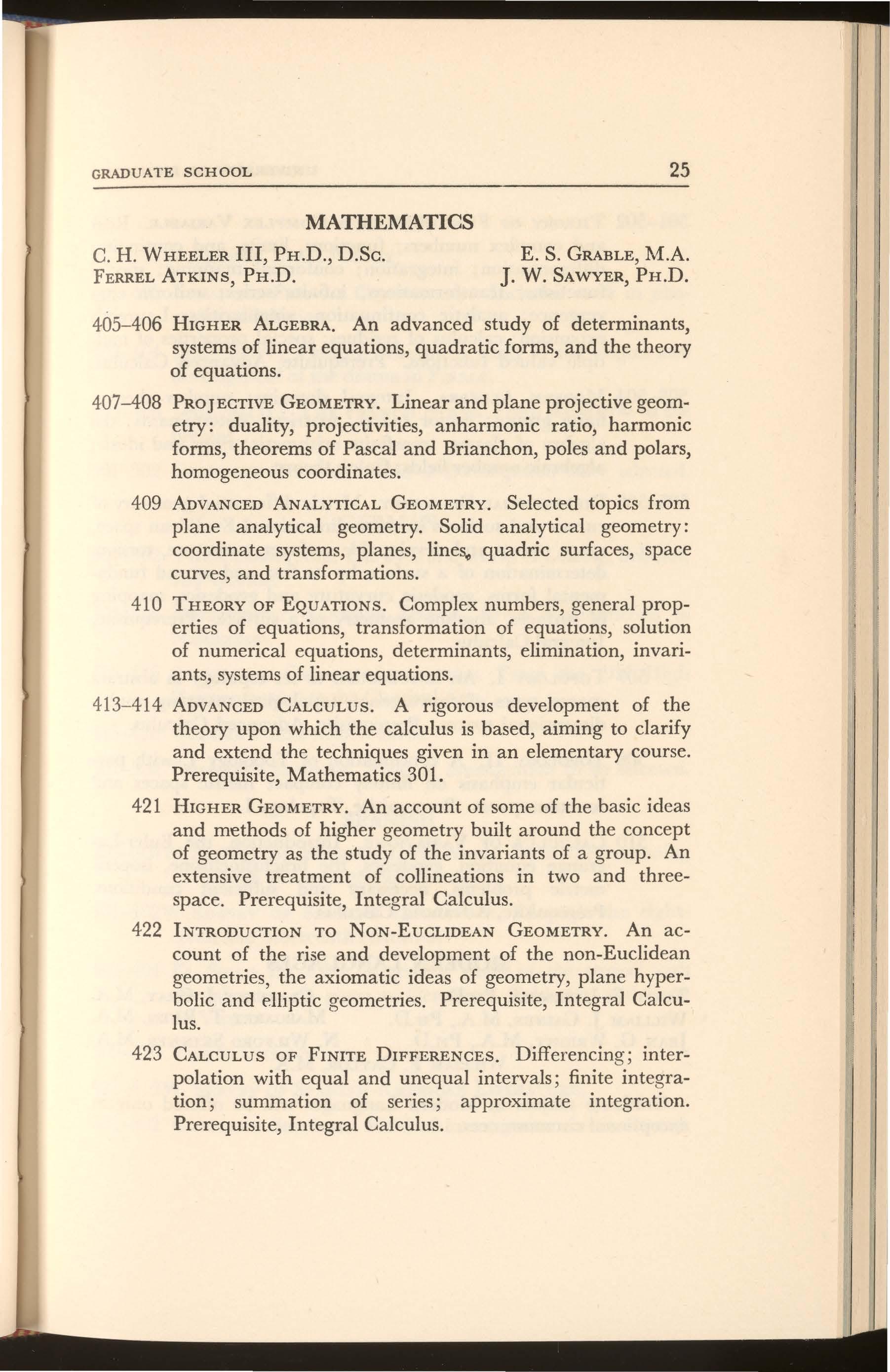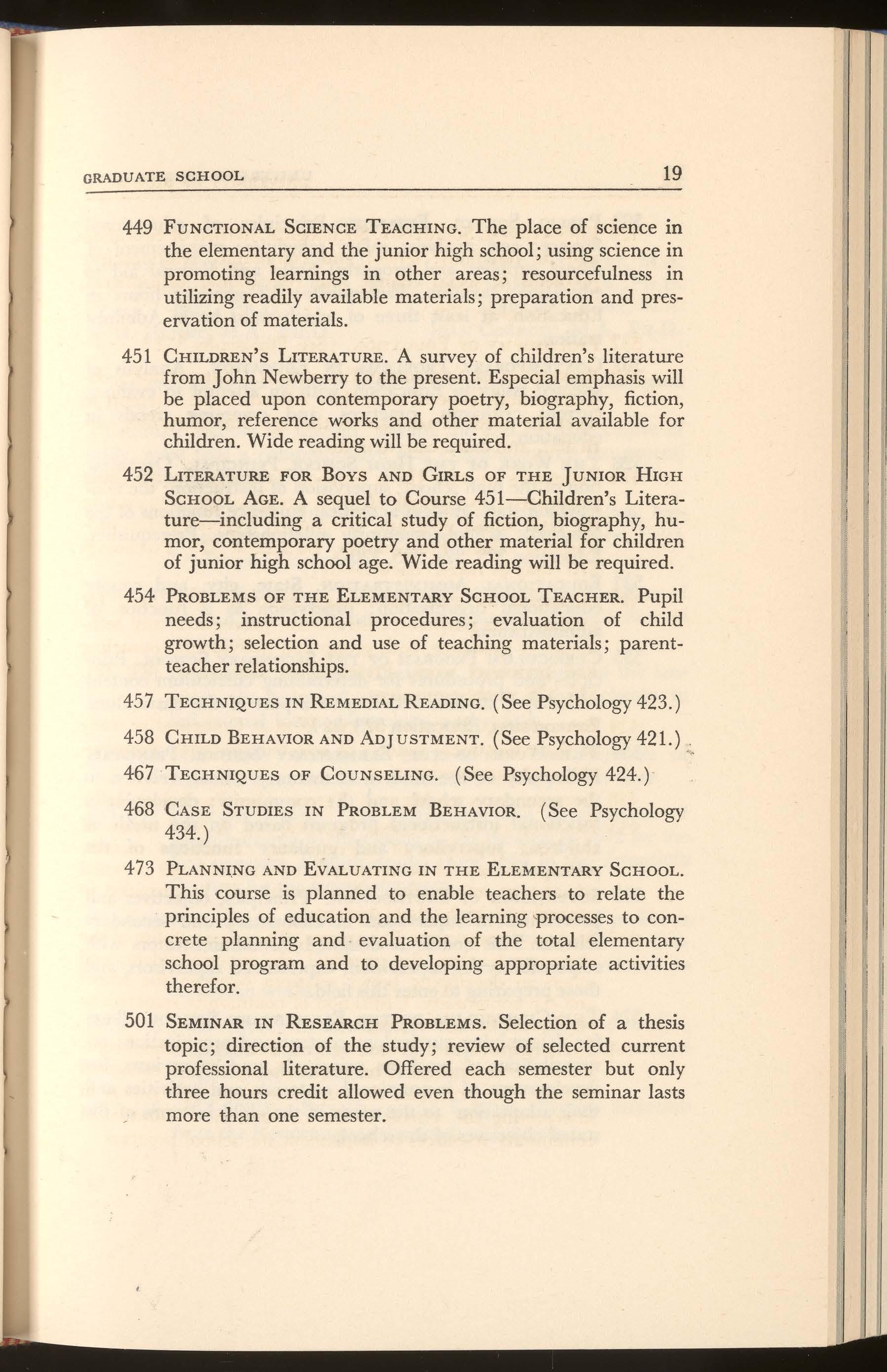 Some of the courses numbered above 400 will be offered each semester in the evening.