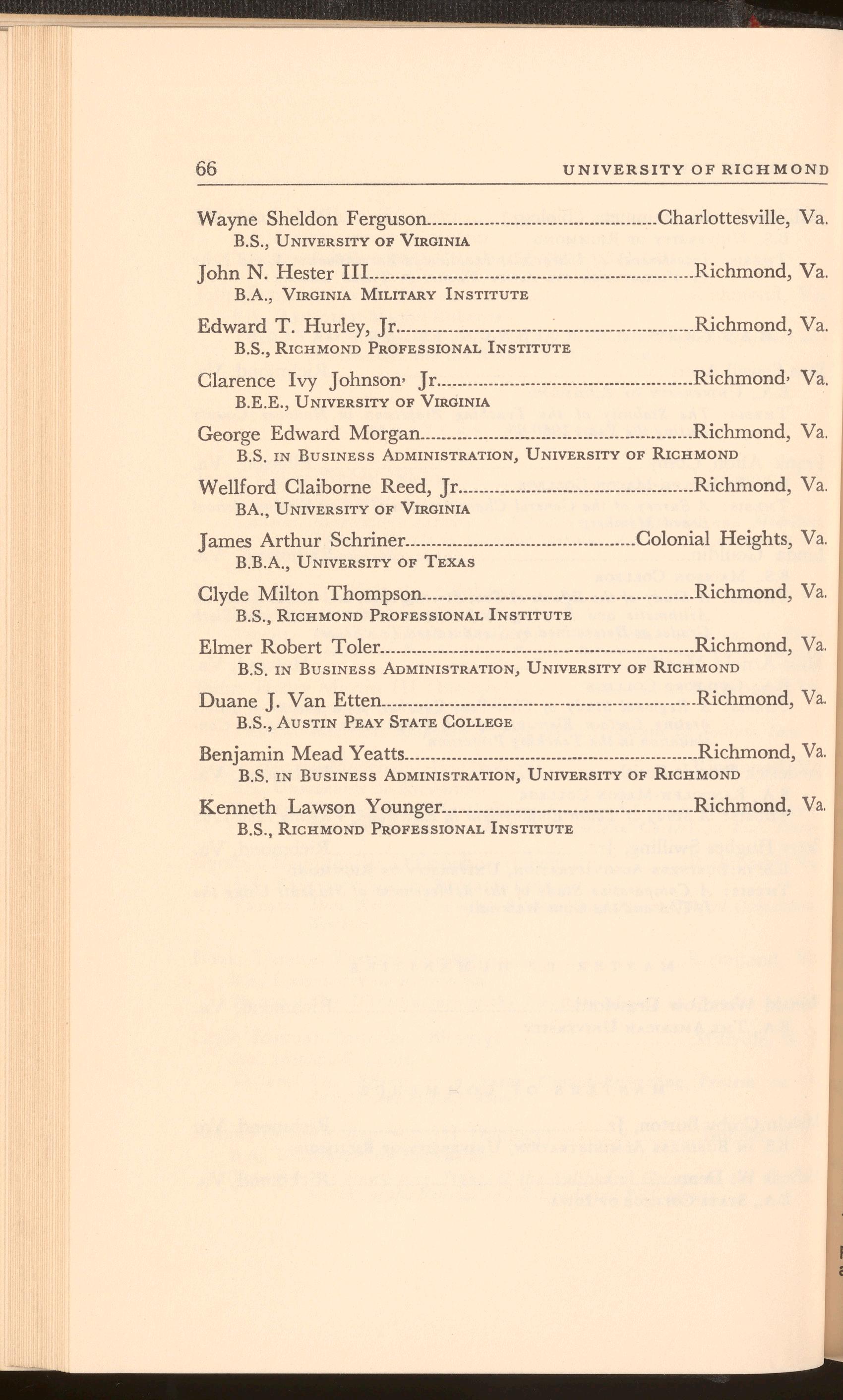 Benjamin Mead Yeatts ........................................................ Richmond, Va.