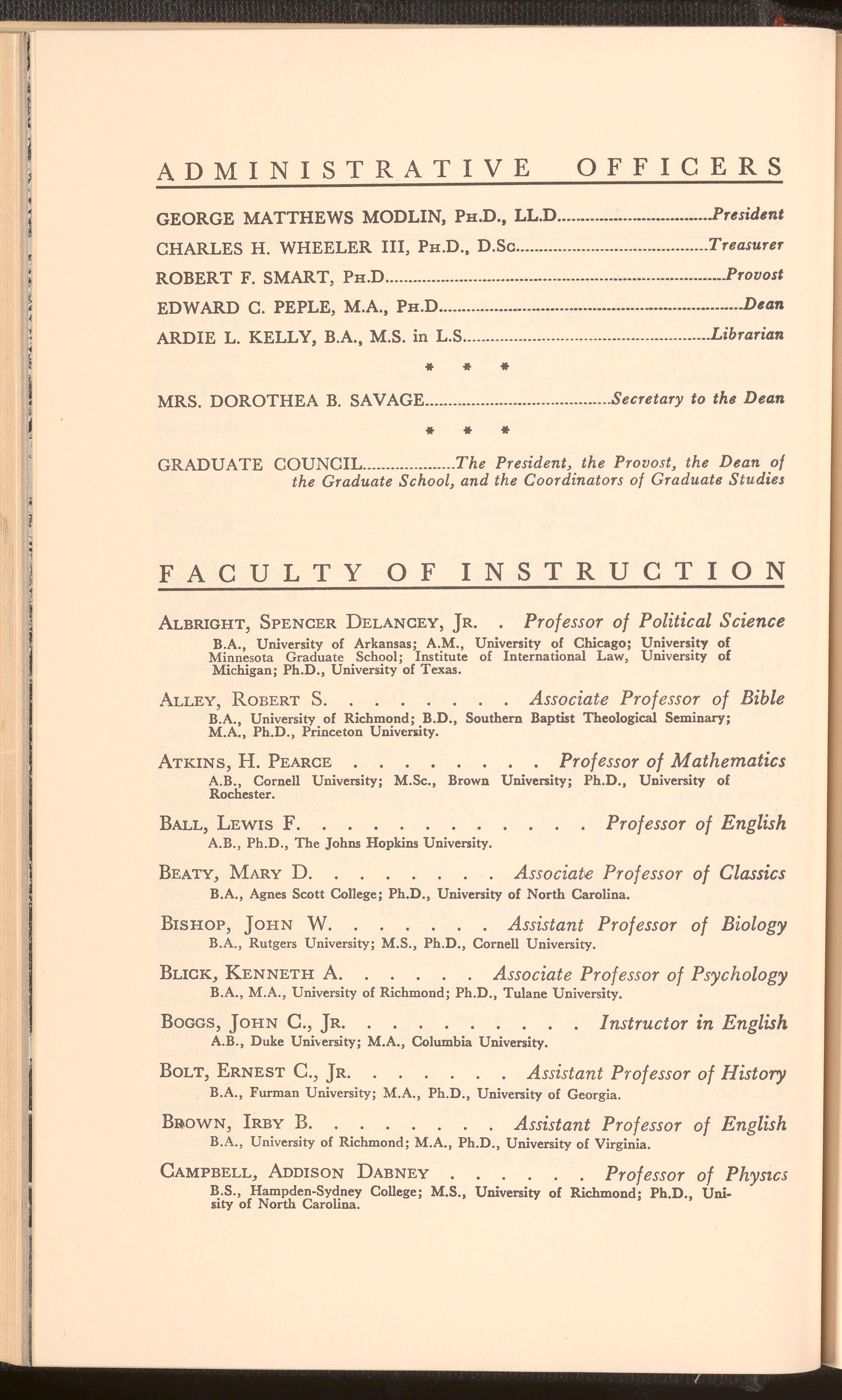 ROBERT T. MARSH, JR. LL.D ................................................................... Recto, W. R. BROADDUS, JR ......................................................................... Vice·Rector