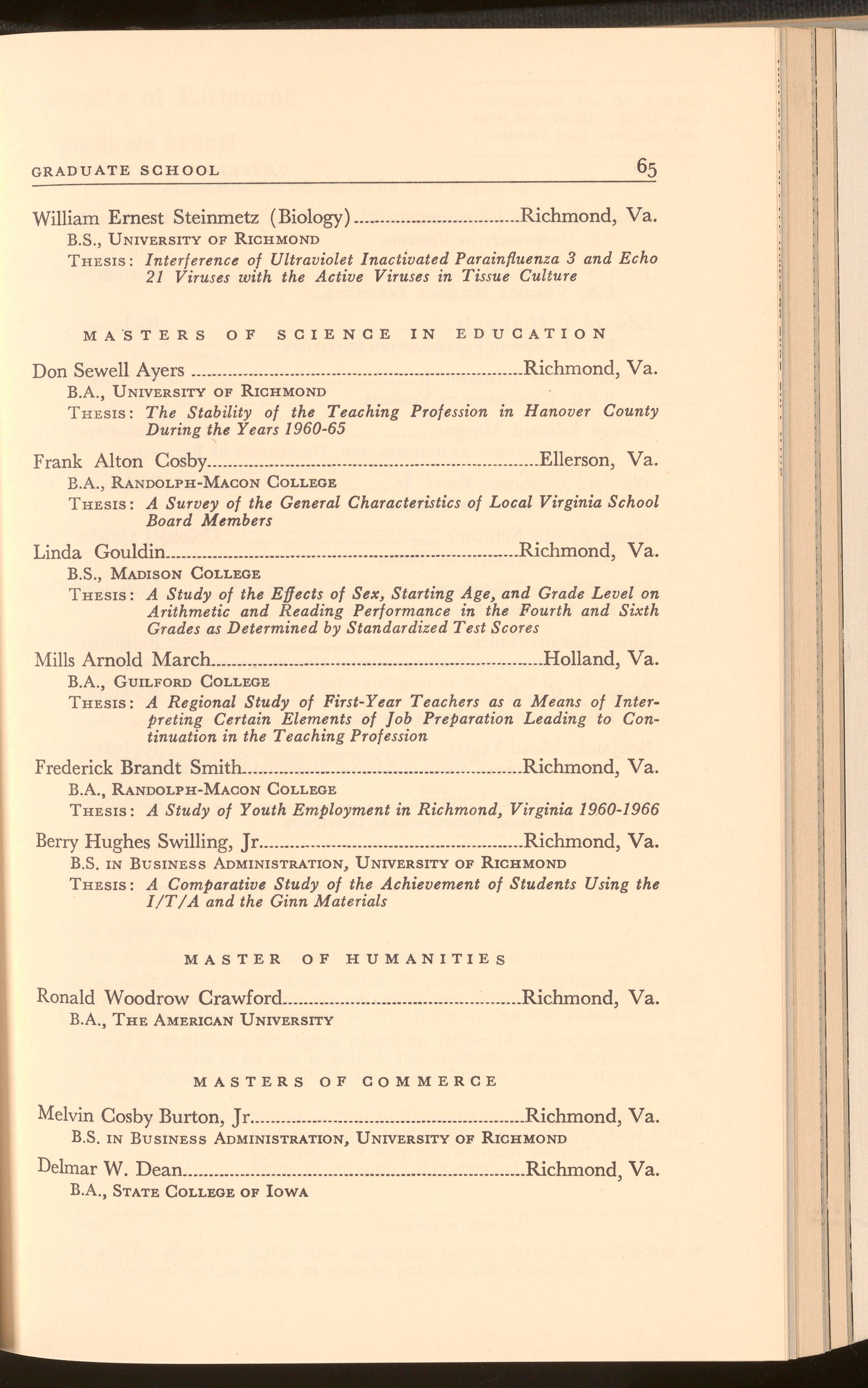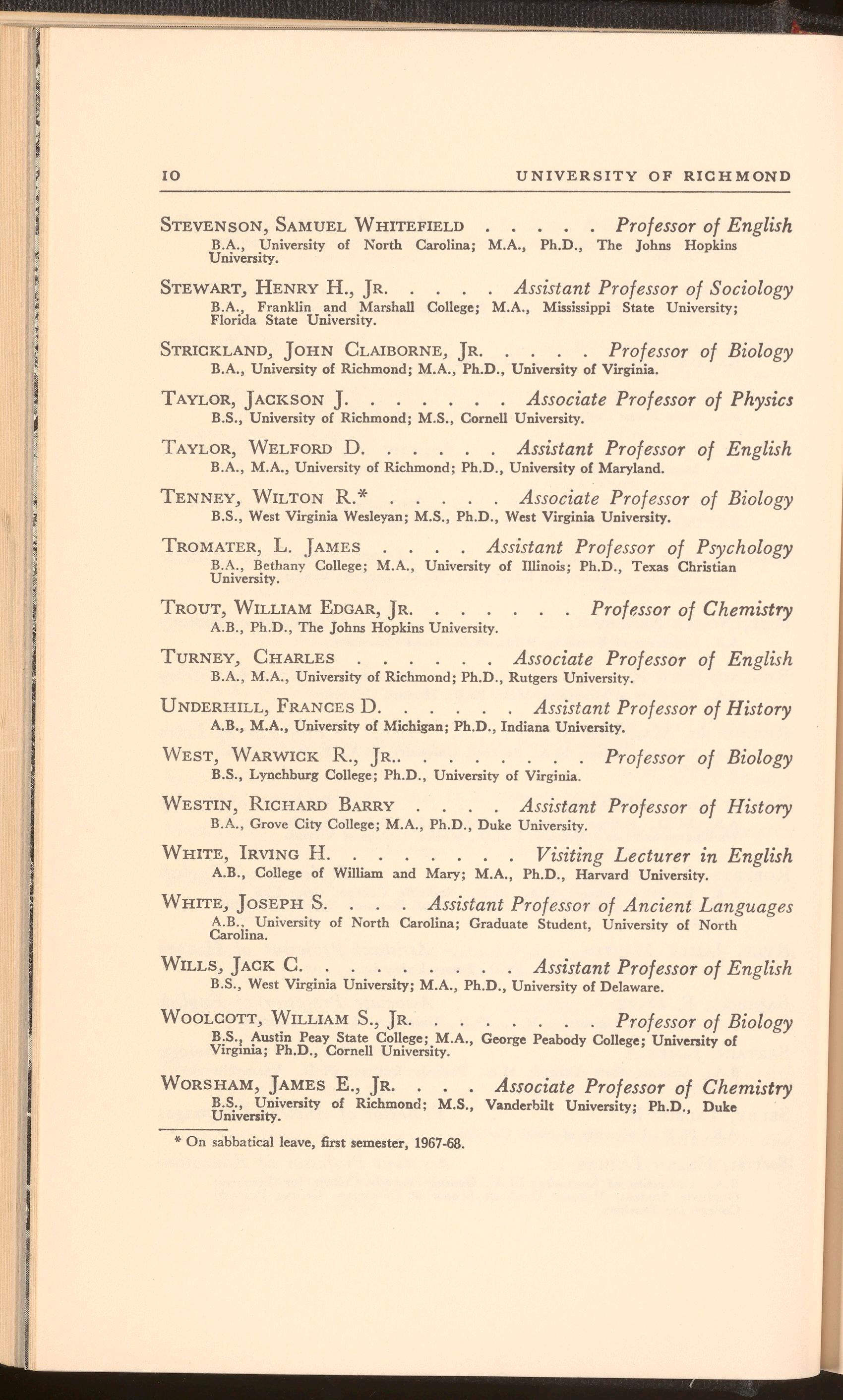 William Ernest Steinmetz (Biology) ................................ Richmond, Va.