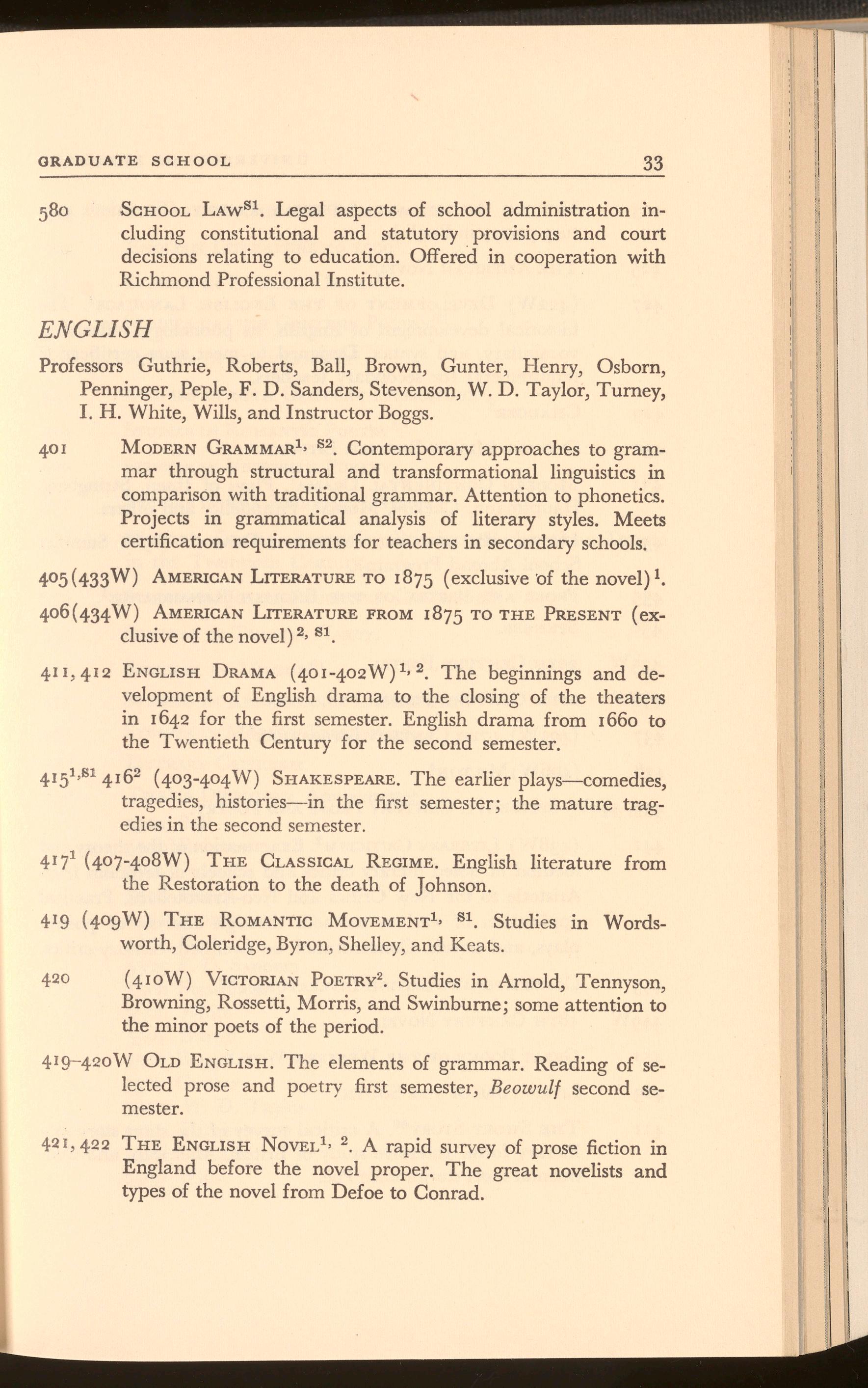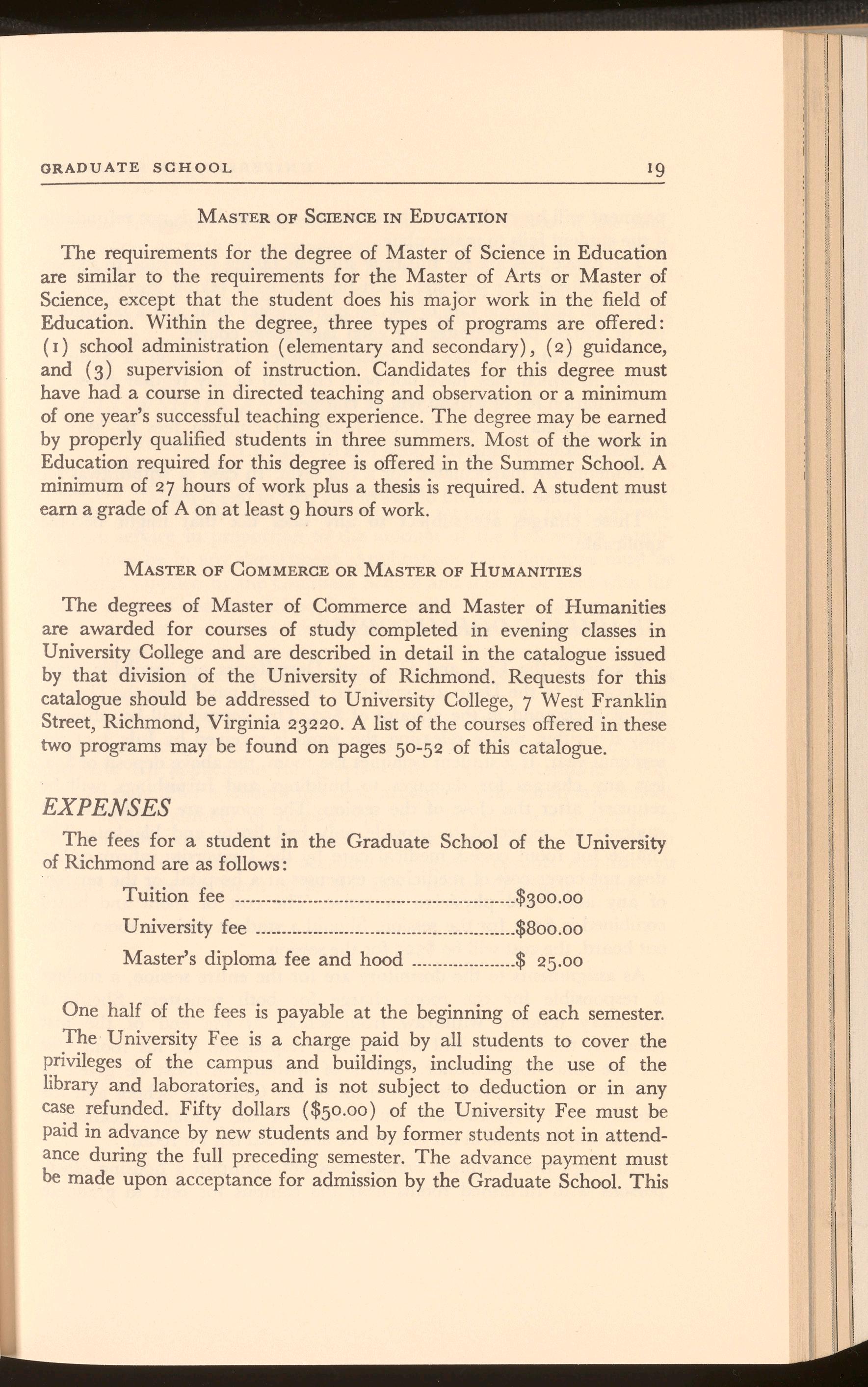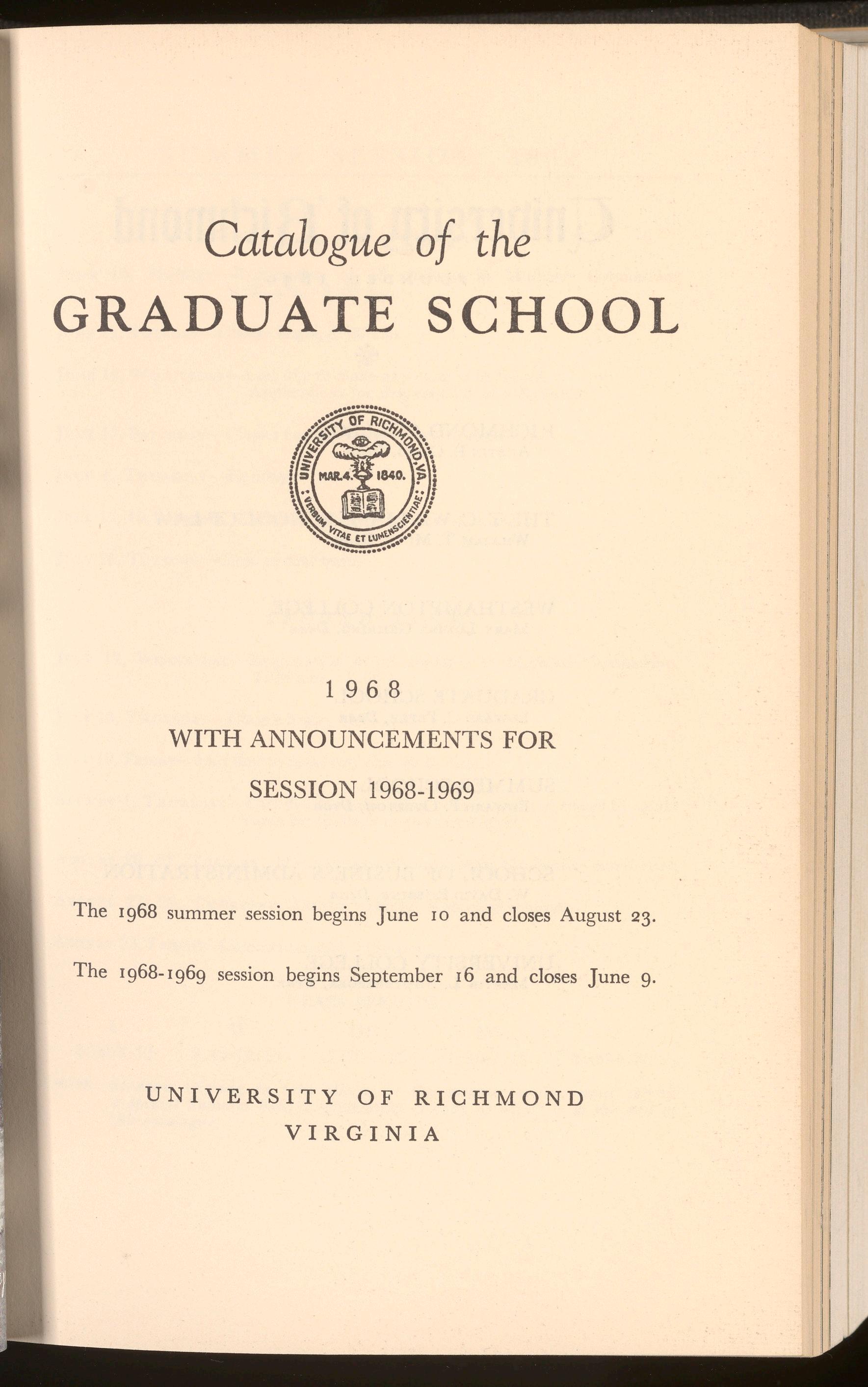 3. GRADUATE STUDENTS: (a) A student who holds any undergraduate degree as of June 10, 1968, submit transcripts of all previous undergraduate and graduate work. (b) A student expecting to b,, a candidate for a Master's degree at the University of Richmond must also have three letters ofre' mendation and his GRE scores sent to the Graduate School office. See Graduate School catalogu specific departmental requirements.
